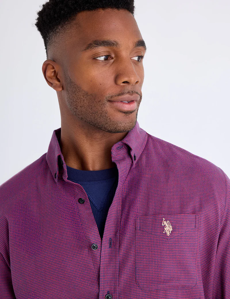 Добавьте в свой гардероб непреходящую изысканность с рубашкой из персикового твила с длинным рукавом и узором «гусиная лапка» от US Polo Assn. Эта рубашка с тонким узором «гусиная лапка» по всей длине, изготовленная из ультрамягкой персиковой саржи, сочетает в себе классический мужской стиль и комфортную отделку с начесом. Вышитый логотип на нагрудном кармане добавляет фирменный стиль, а классический крой позволяет носить её как отдельно, так и в составе многослойной одежды.