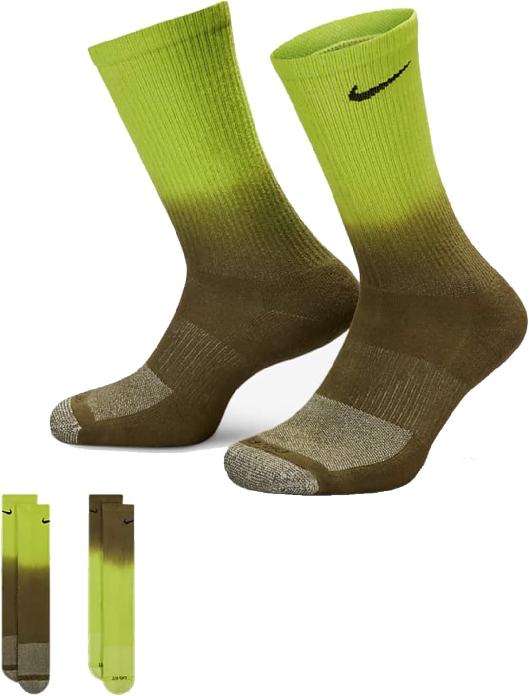 Набор из 2 спортивных носков Nike Dri-Fit с влагоотводящими свойствами (размер L, W 10-13/M 8-12, двухцветный зеленый)
