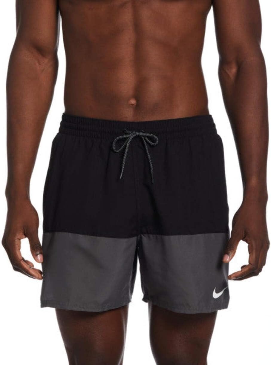 Плавки-шорты Nike Swim Split с цветными блоками, длиной 5 дюймов, с вентиляционными отверстиями для ног, обеспечивающими улучшенную вентиляцию и дополнительную свободу движений, внутренним сетчатым карманом для дополнительного надежного хранения, эластичным поясом с внешним шнурком, карманами с сетчатой ​​подкладкой и термотрансферной эмблемой.