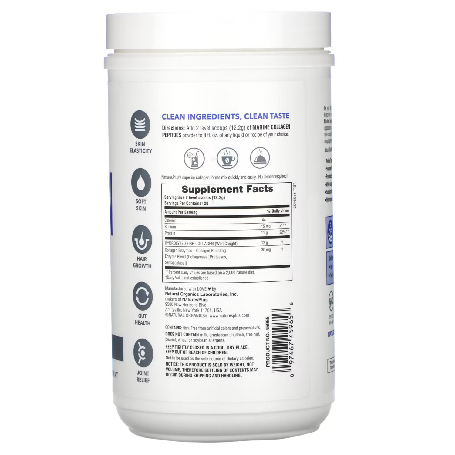 Прекрасное самочувствие с пептидами морского коллагена NaturesPlus. Пептиды морского коллагена, созданные с высокой точностью, богатые коллагеном типов I и III, уникальным образом повышают эластичность, увлажненность, внешний вид и общее состояние кожи. Пептиды морского коллагена NaturesPlus, произведенные из экологически чистой, выловленной в дикой природе рыбы, гидролизованы для облегчения переваривания и быстрого усвоения, что обеспечивает наилучшие результаты.