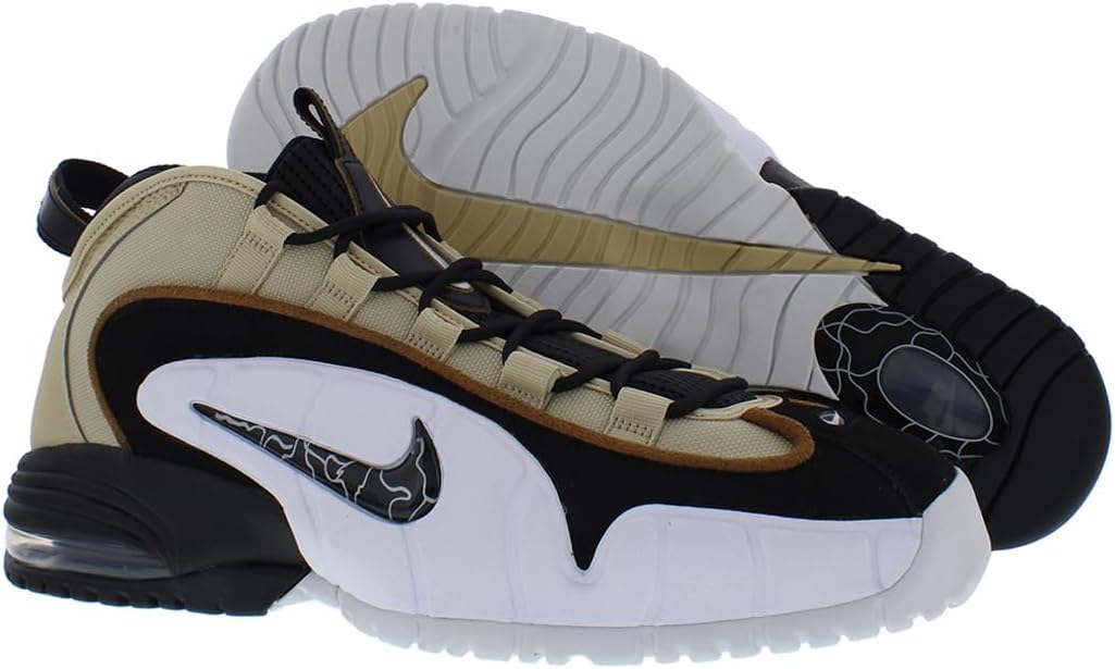 Кроссовки Nike Air Max Penny выполнены из кожи и нейлона с мягким бортиком для комфорта. Кроссовки украшены вышитыми логотипами Swoosh на язычке и боковой стороне, а также логотипом Swoosh спереди и вышитым логотипом Air Max Penny сзади. Кроссовки имеют видимую подошву, шнуровку и резиновую подметку. Модель: NKDV0684-100, цвет: белый / Varsity Royal / черный, материал: кожа / нейлон.