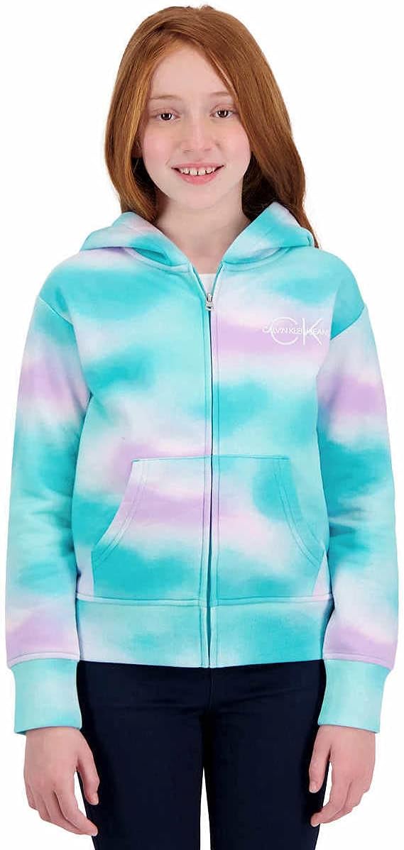 Calvin Klein для девочек, толстовка с капюшоном на молнии, Aqua Sky
