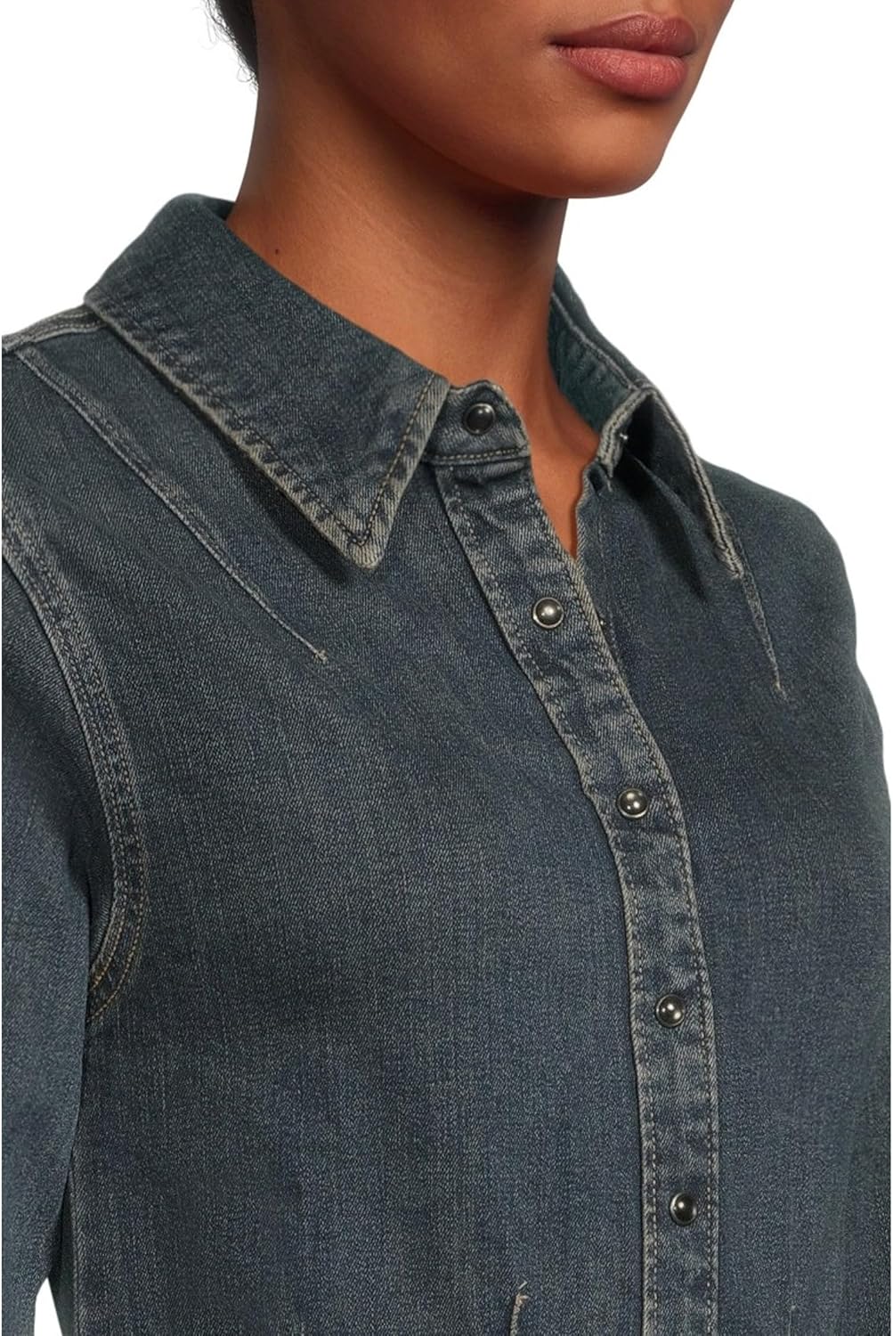 Классическая джинсовая рубашка с легким приталенным кроем. Наша рубашка с длинным рукавом застегивается на пуговицы спереди, имеет декоративные швы и облегающий крой.