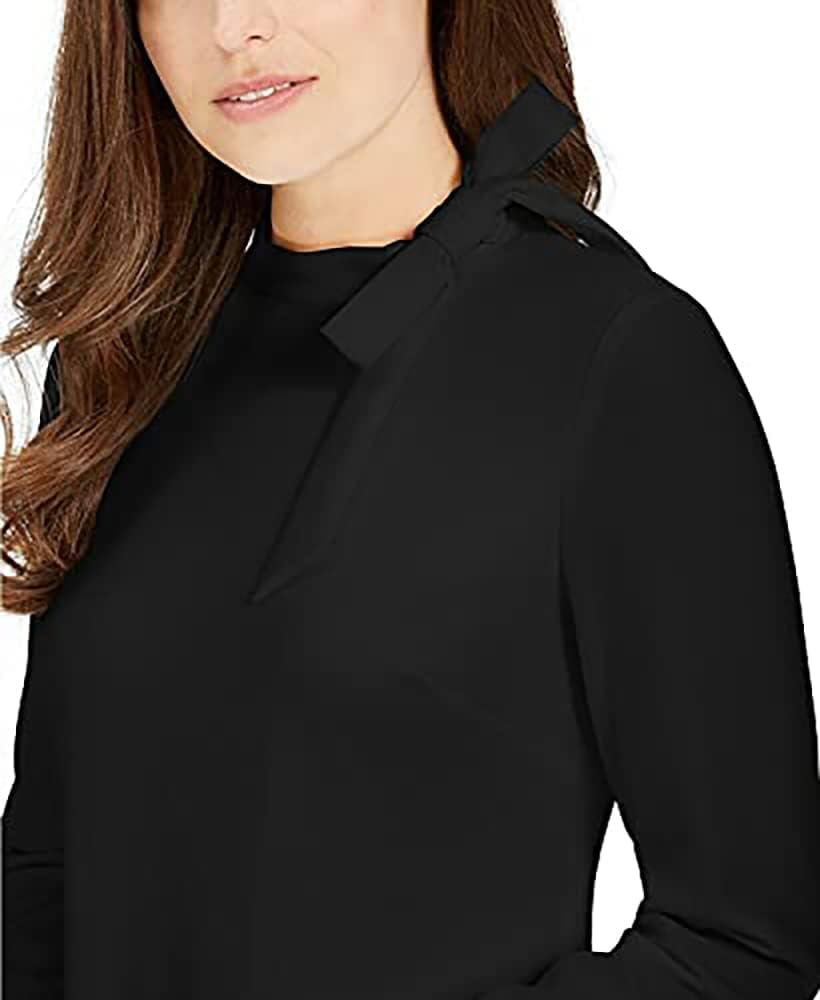 Поднимите свое маленькое черное платье на новый уровень с платьем Calvin Klein с длинными рукавами и бантом на шее.