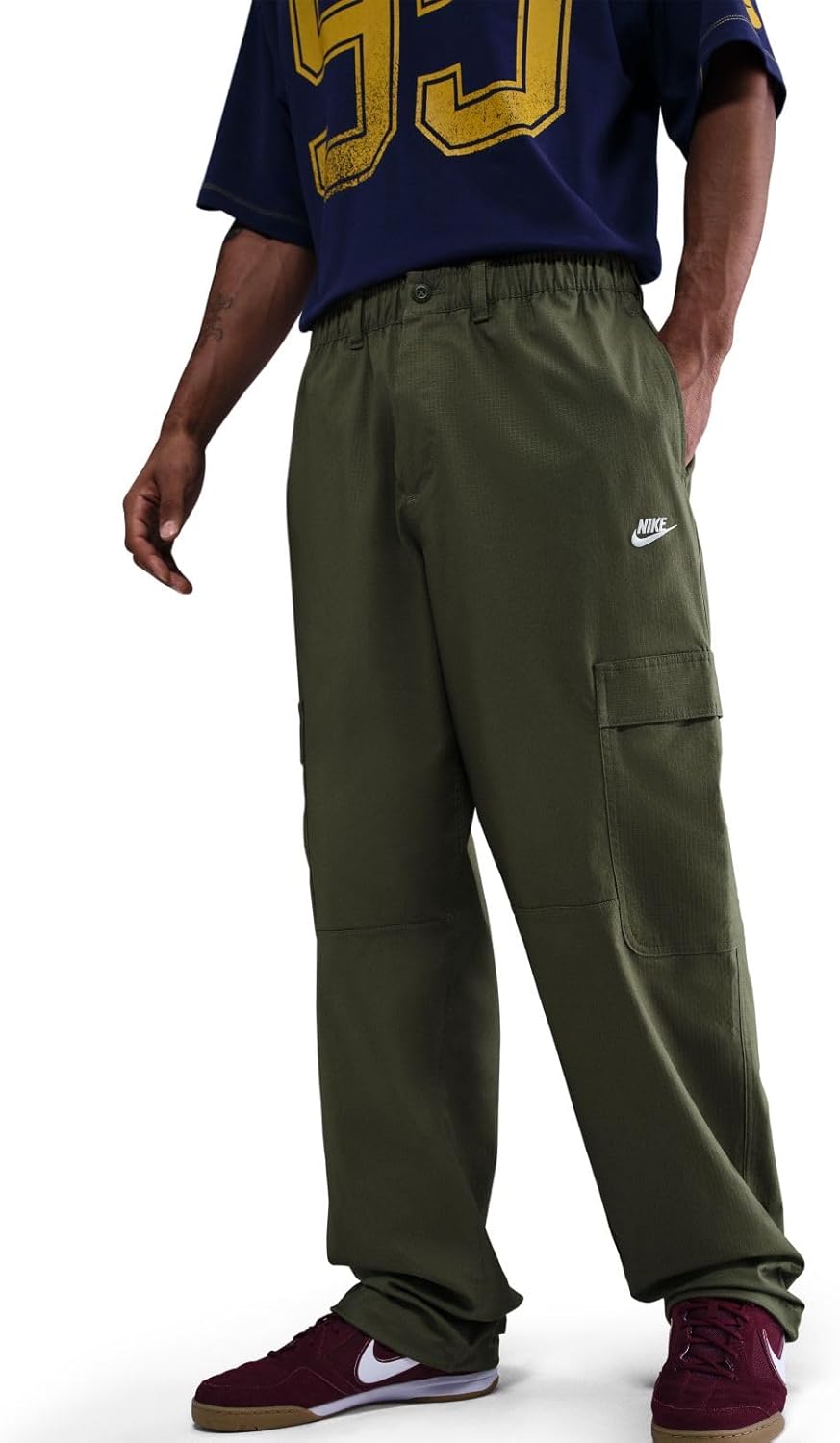 Эти плетеные брюки-карго, созданные для повседневной носки, добавляют комфорт Nike Club к классическому практичному стилю. Они просторные в области ягодиц и бедер, а резинка на щиколотке позволяет регулировать посадку по ноге. Свободный крой обеспечивает свободу движений в области ягодиц и бедер, создавая непринужденный образ. Эластичный пояс и застежка на пуговицы обеспечивают удобную посадку на талии.