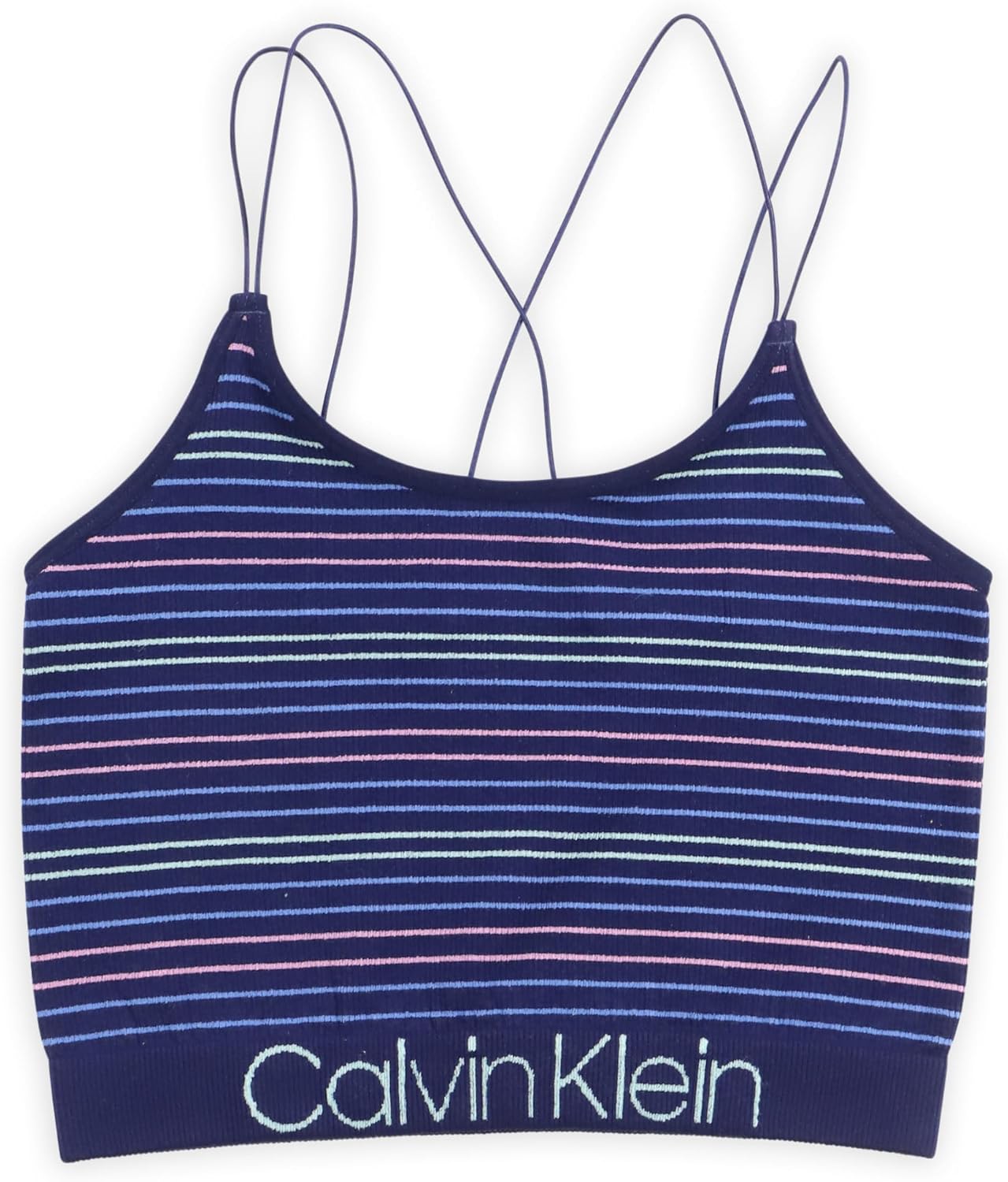 Бесшовные ребристые топы Calvin Klein для девочек, Navy Calvin Stripes
