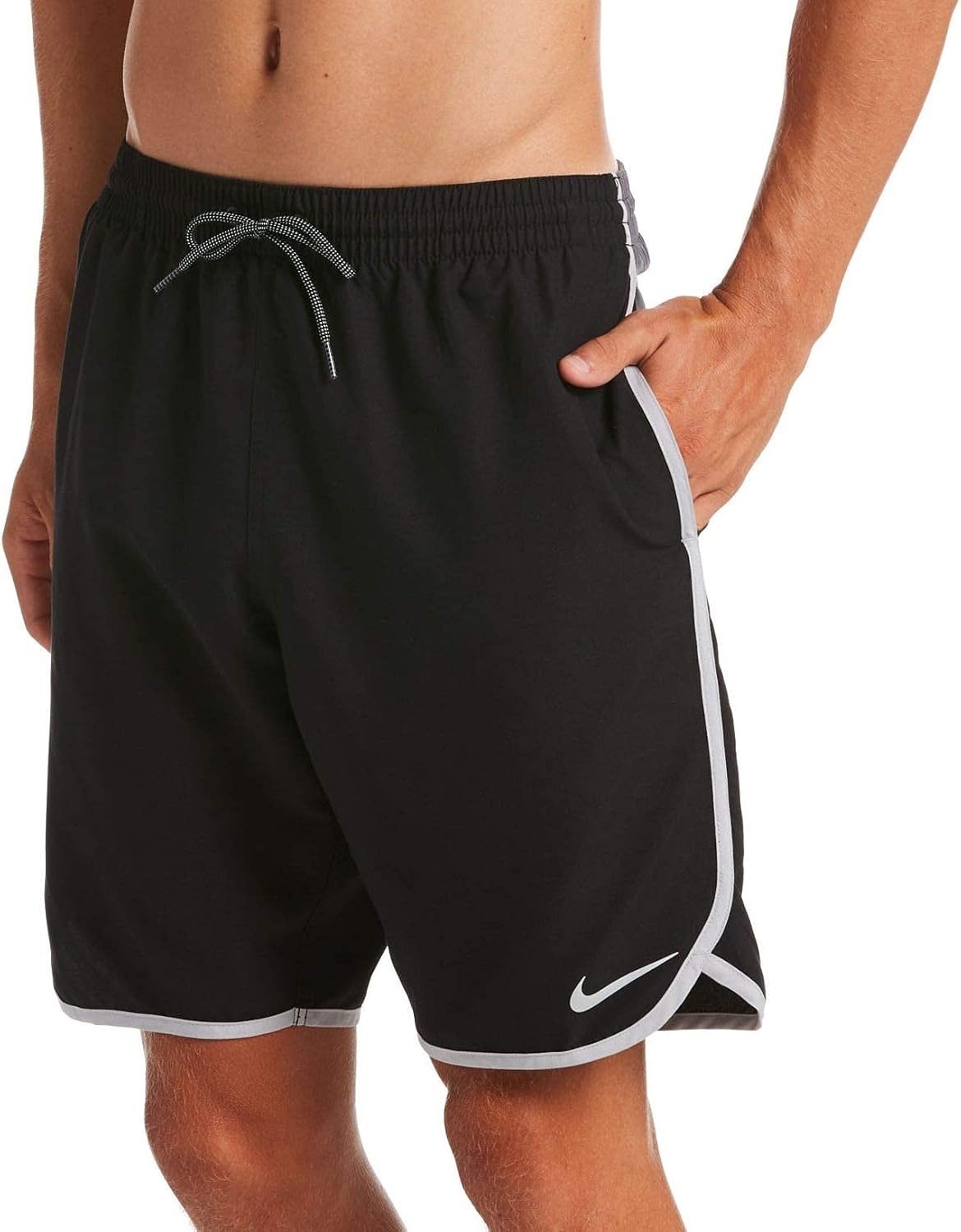 Эластичный пояс, вшитые сетчатые трусики Карманы на швах, внутренний сетчатый карман для мелких предметов Nike Repel: прочная водоотталкивающая (DWR) отделка Внутренний шов 9 дюймов, внешний шов 20 дюймов