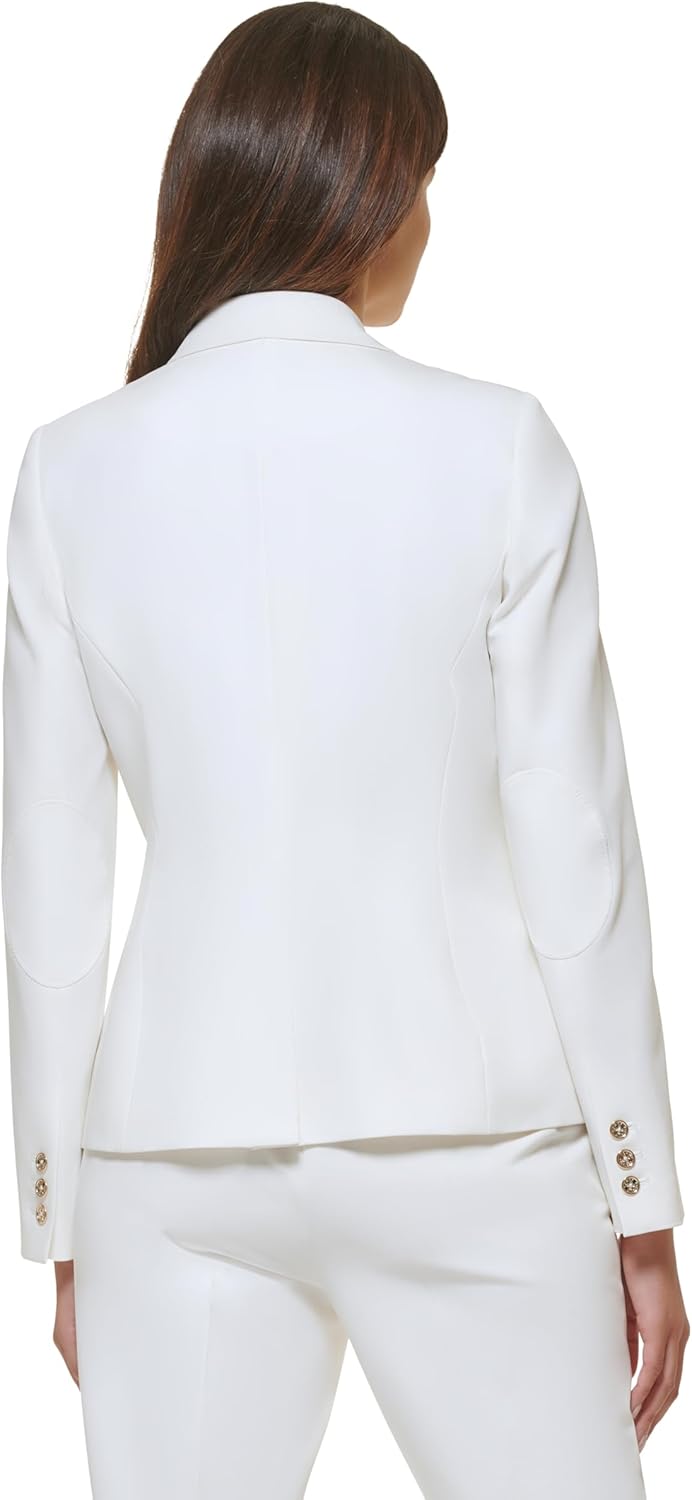 Этот женский блейзер Tommy Hilfiger представляет собой деловой пиджак с застежкой на одну пуговицу, логотипом TH на левом лацкане, подплечниками, прорезными карманами, накладками на локтях и пуговицами на рукавах.