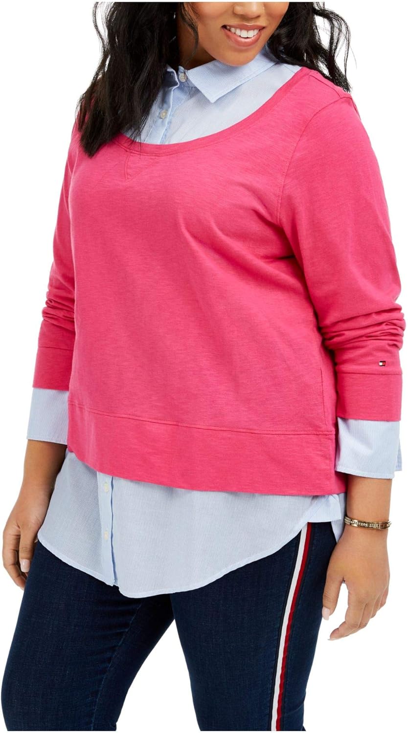 Женский полосатый топ Tommy Hilfiger Plus с многослойным эффектом, Pink