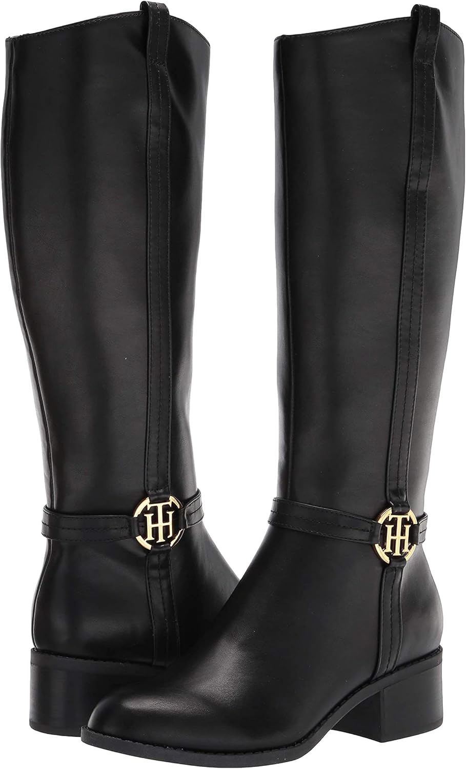Обновленная отделка сапог Diwan в конном стиле изящно украшена фирменной фурнитурой Tommy Hilfiger золотистого оттенка.
