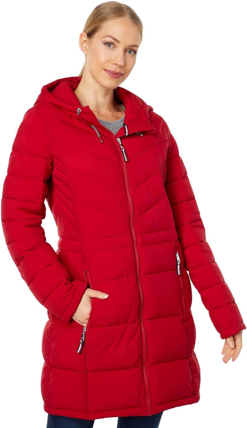 Tommy Hilfiger 3/4 Hooded Packable, Crimson