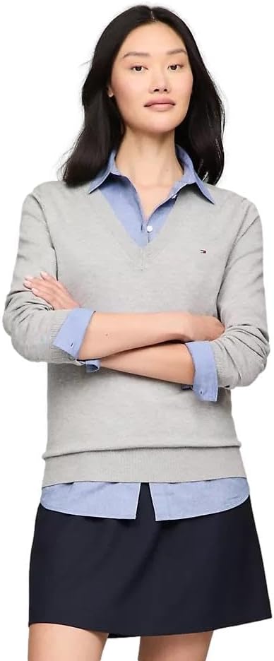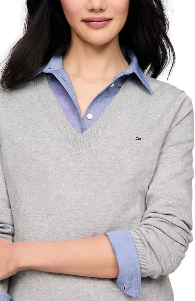 Женский легкий свитер Tommy Hilfiger Classic Fit с V-образным вырезом, Basic Grey.