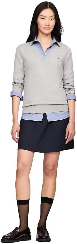 Женский легкий свитер Tommy Hilfiger Classic Fit с V-образным вырезом, Basic Grey. 7 877₽