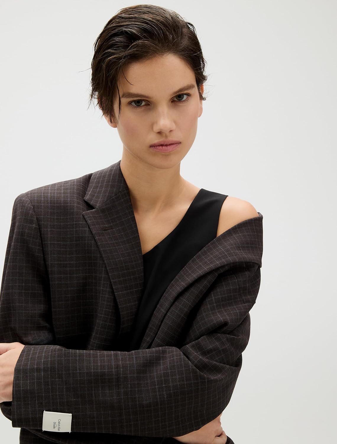 Скрытая застежка-молния и застежка на застежке-липучке сзади.