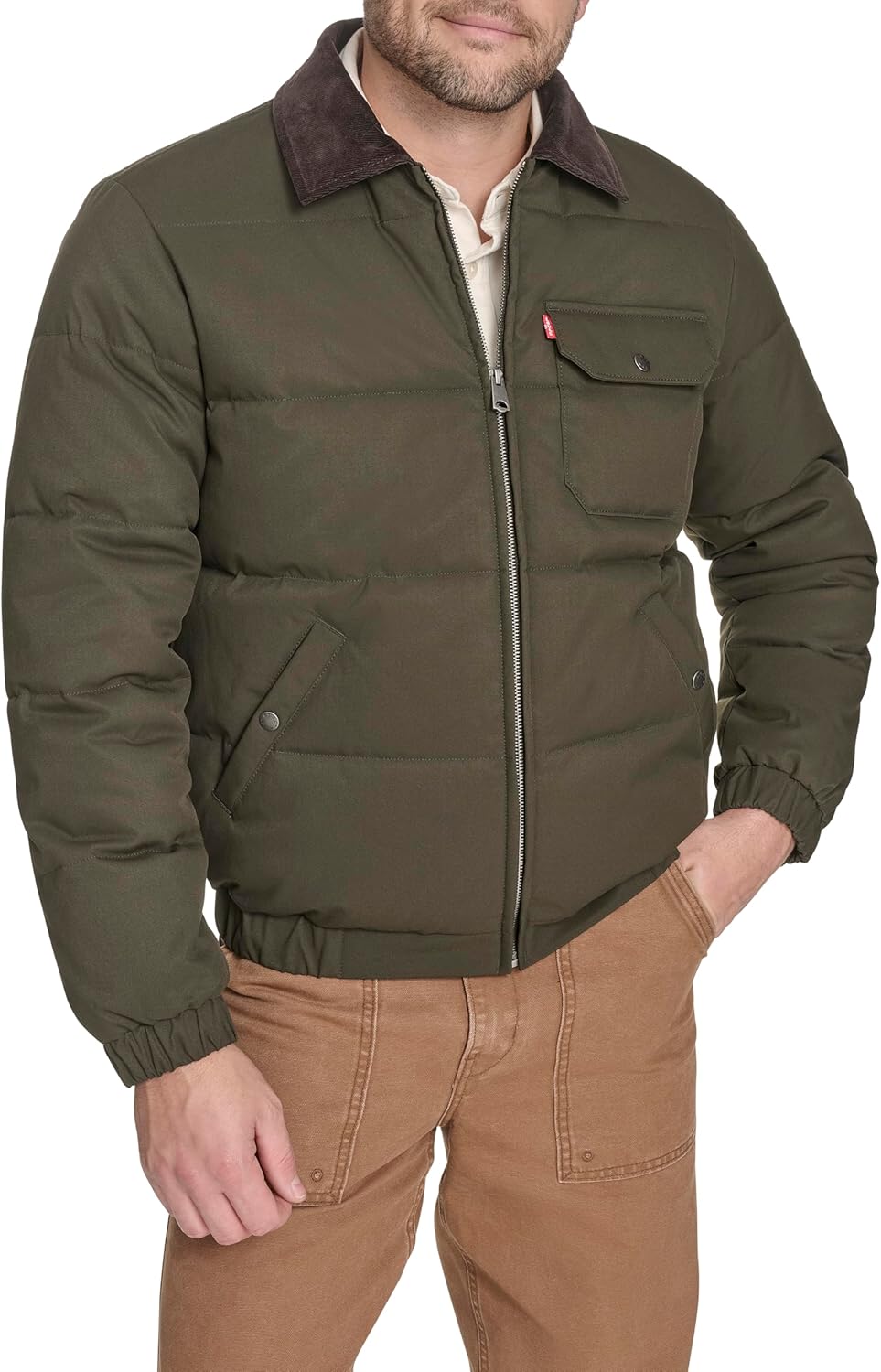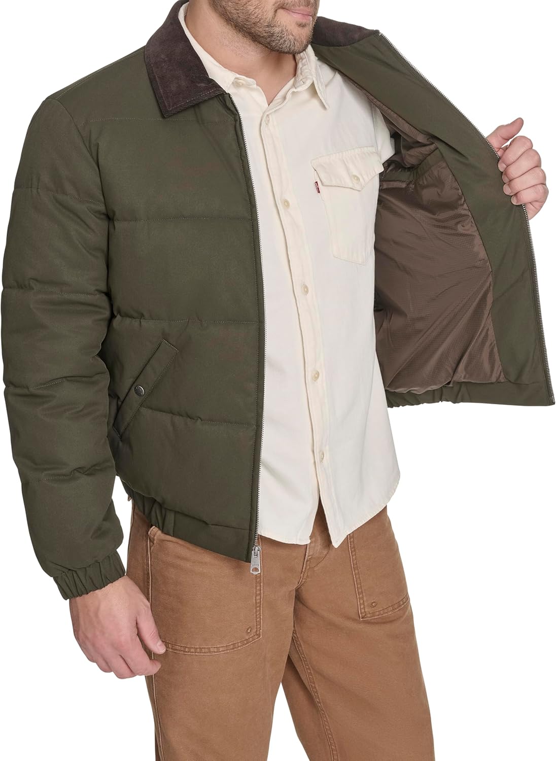Мужская стеганая куртка Levi's Depot с воротником из шерпы, Olive
