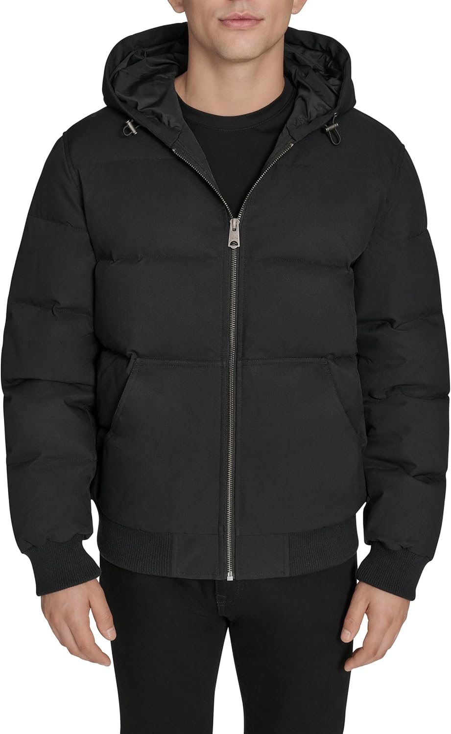 Теплый пуховик со стеганой конструкцией Силуэт в стиле бомбер с ребристым подолом и манжетами Два нижних кармана для хранения вещей и тепла рук Прикрепленный капюшон для дополнительной защиты от непогоды Молния по всей длине спереди для удобства надевания и снимания