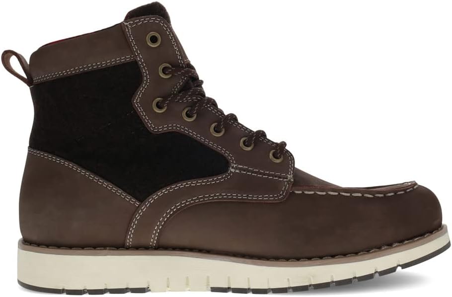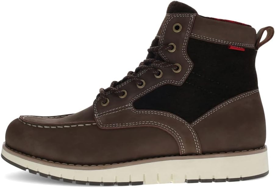 Откройте для себя приключения и свой стиль с этими ботинками Levi's. Верх из мятой кожи и шерсти не только демонстрирует ваш строгий повседневный стиль, но и обеспечивает воздухопроницаемость и тепло, делая эти ботинки идеальными для любого наряда и погоды. Кроме того, эти ботинки на шнуровке обеспечивают комфорт благодаря дополнительной подкладке в области голенища и язычка, а также прочной амортизирующей подошве. Эти мужские ботинки легко надевать и снимать благодаря петельке на пятке, а контрастные материалы, детальная строчка и ненавязчивый логотип Levi's идеально подойдут к любому образу, от джинсов до брюк цвета хаки.
