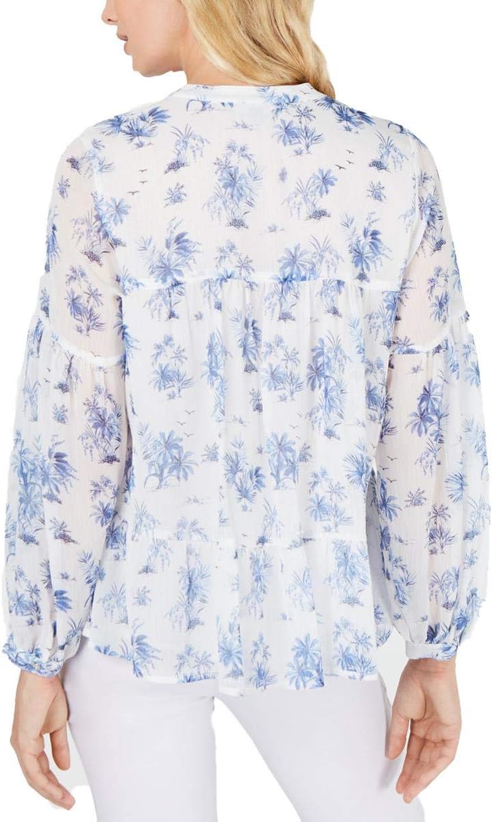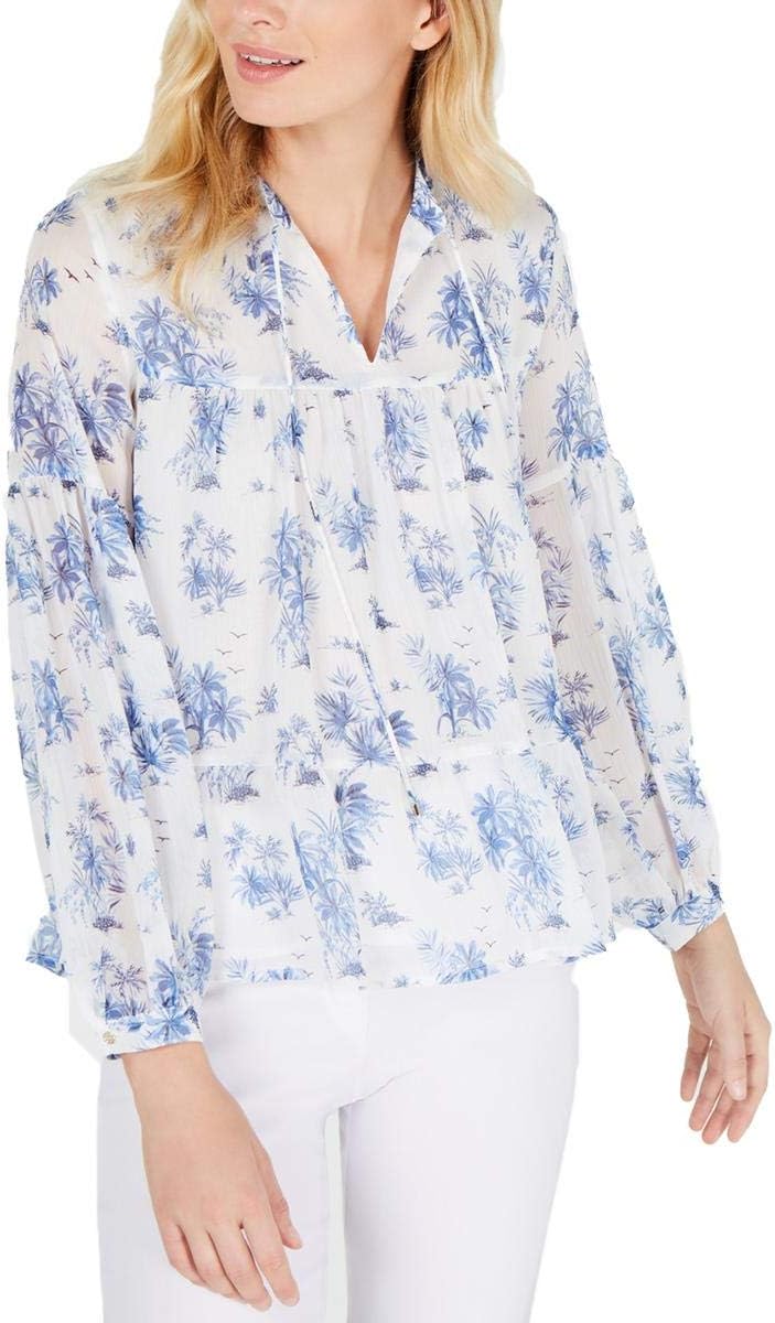 Мягкий принтованный топ от Tommy Hilfiger украшен тремя ярусами пышных цветов и идеально сочетается с узкими брюками. Примерный рост модели - 5 футов 10 дюймов, на ней размер S. Свободный крой; доходит до бедра Разрезной круглый вырез с завязками Ярусы с рюшами под кокетками спереди и сзади