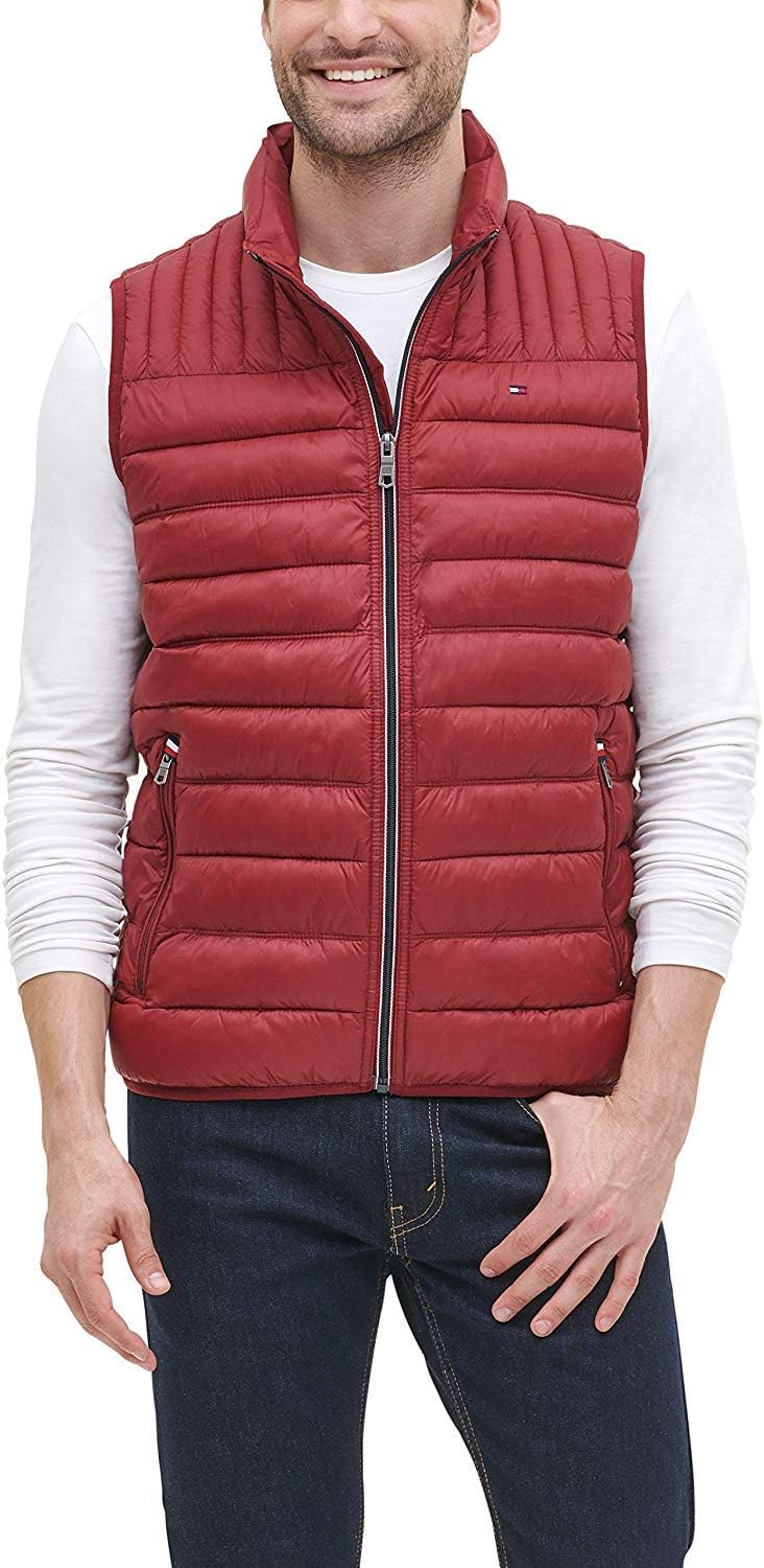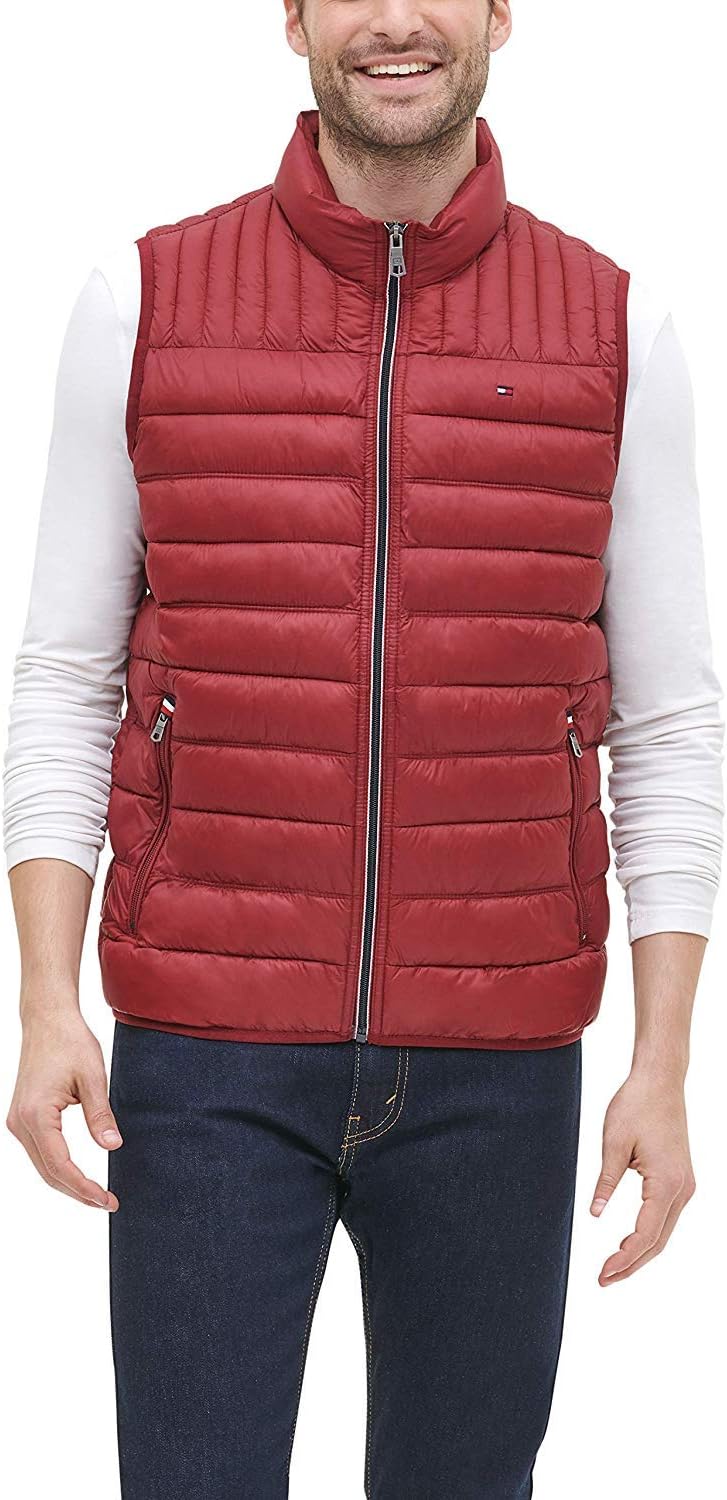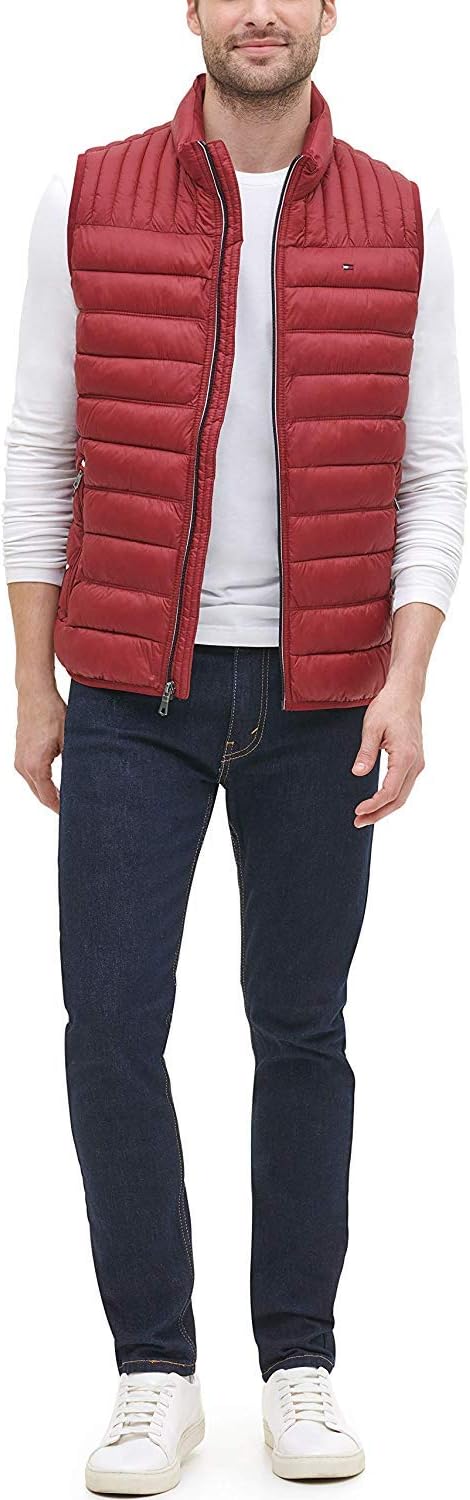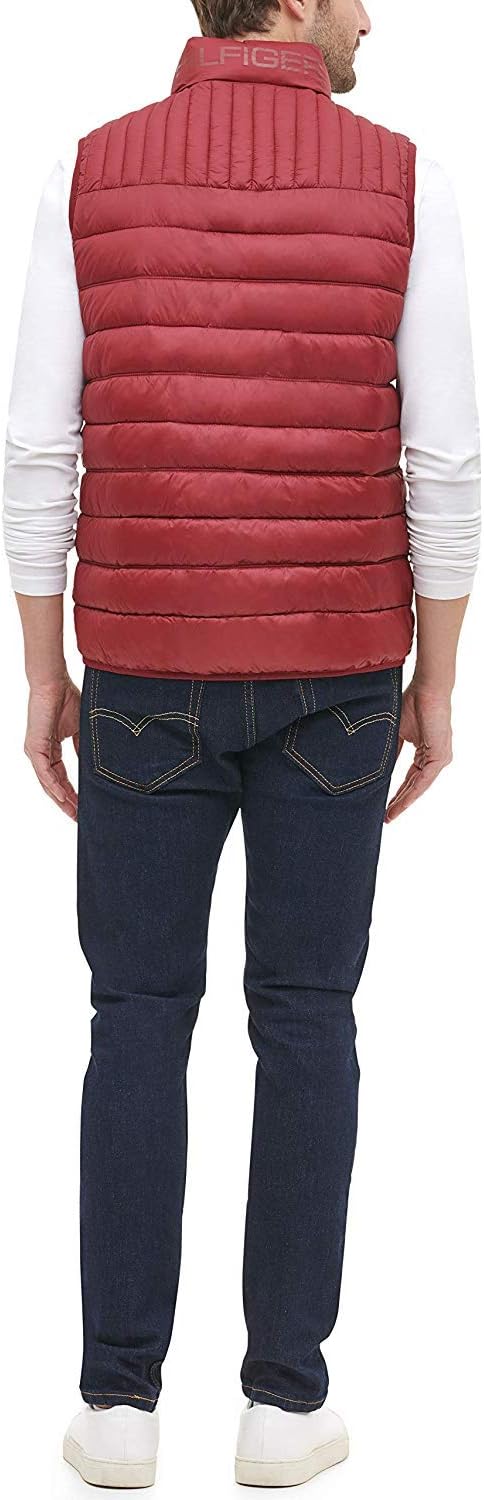 Легкий стеганый жилет из нейлона с логотипом Hilfiger, напечатанным сзади на воротнике-стойке.