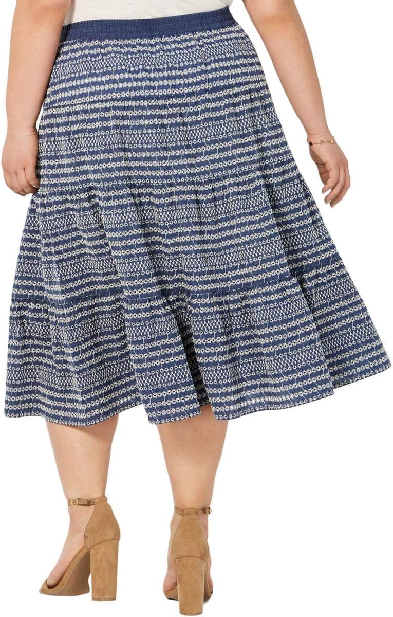 Эта юбка больших размеров от Tommy Hilfiger с многоуровневым силуэтом, невероятно кокетливая, сочетает в себе непринужденность джинсовой ткани с изяществом вышивки и люверсов.