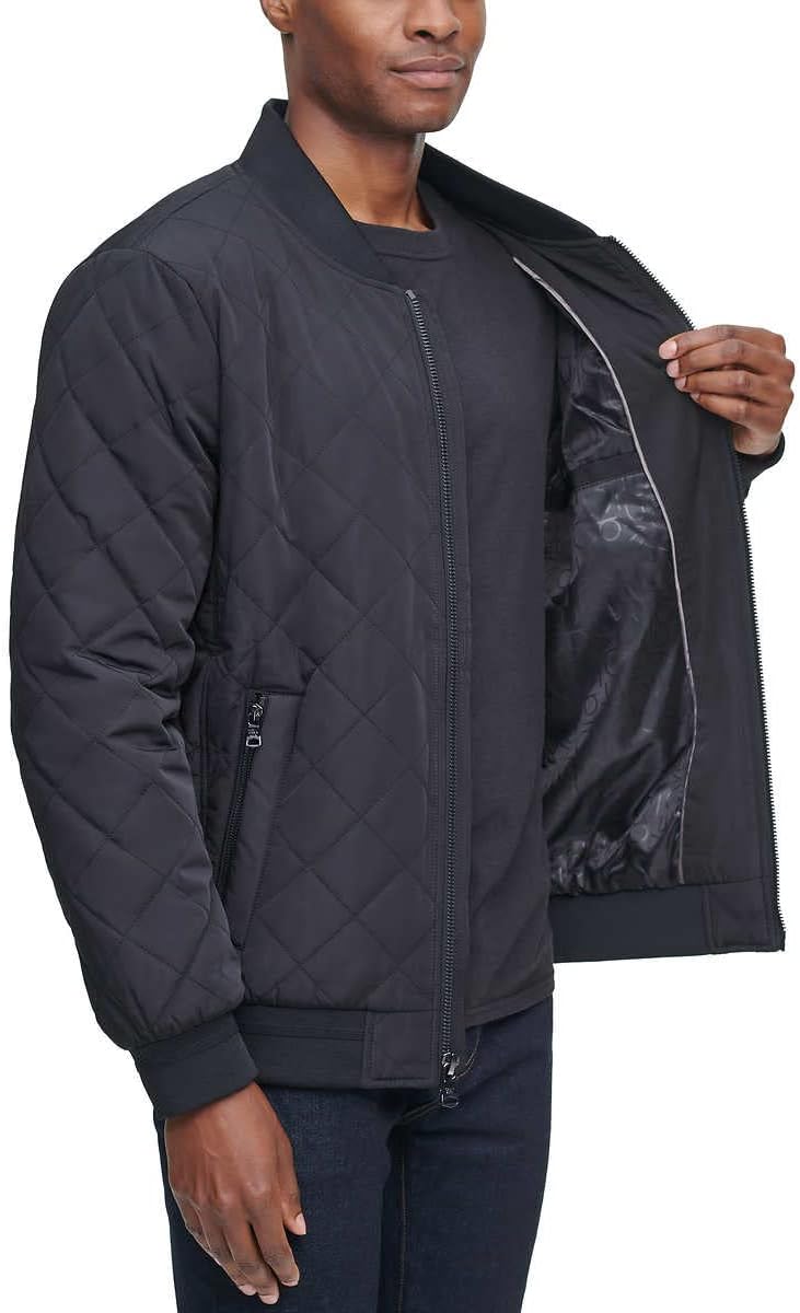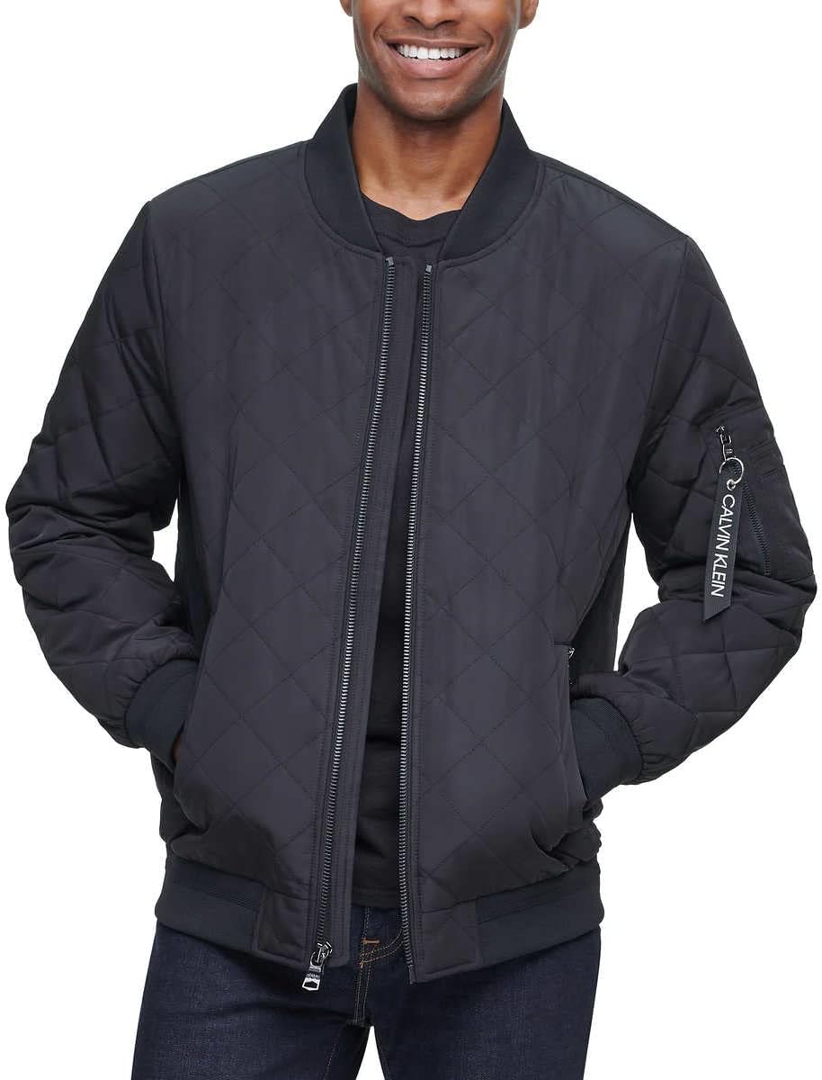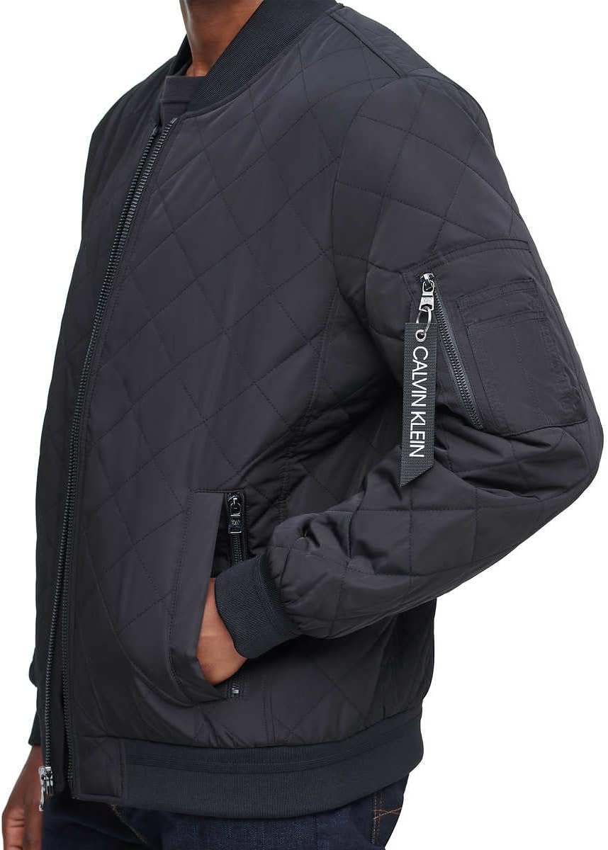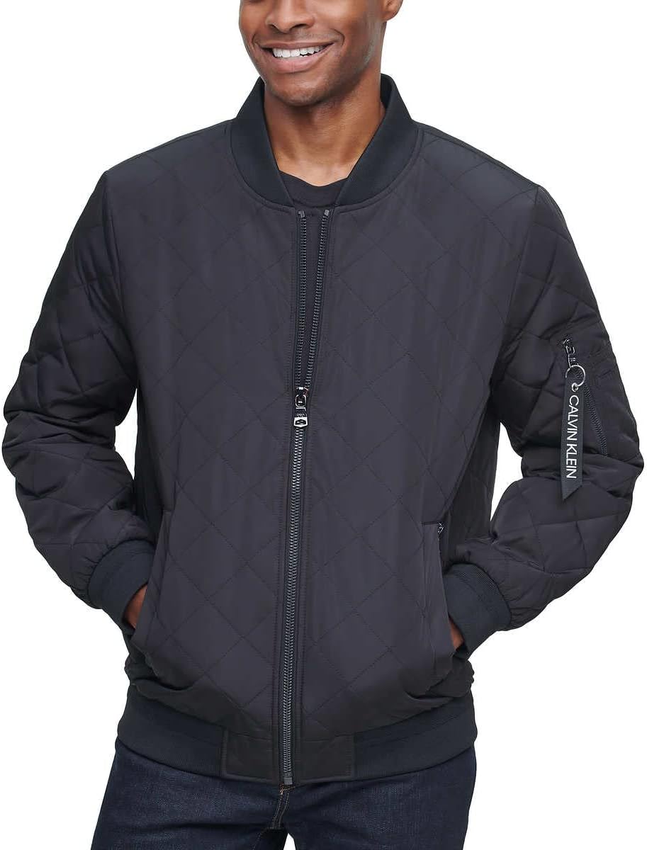 Легкая стеганая куртка-бомбер Calvin Klein для мужчин. Состав ткани: Верх, подкладка и наполнитель: 100% полиэстер. Трикотаж: 96% полиэстер, 4% спандекс.
