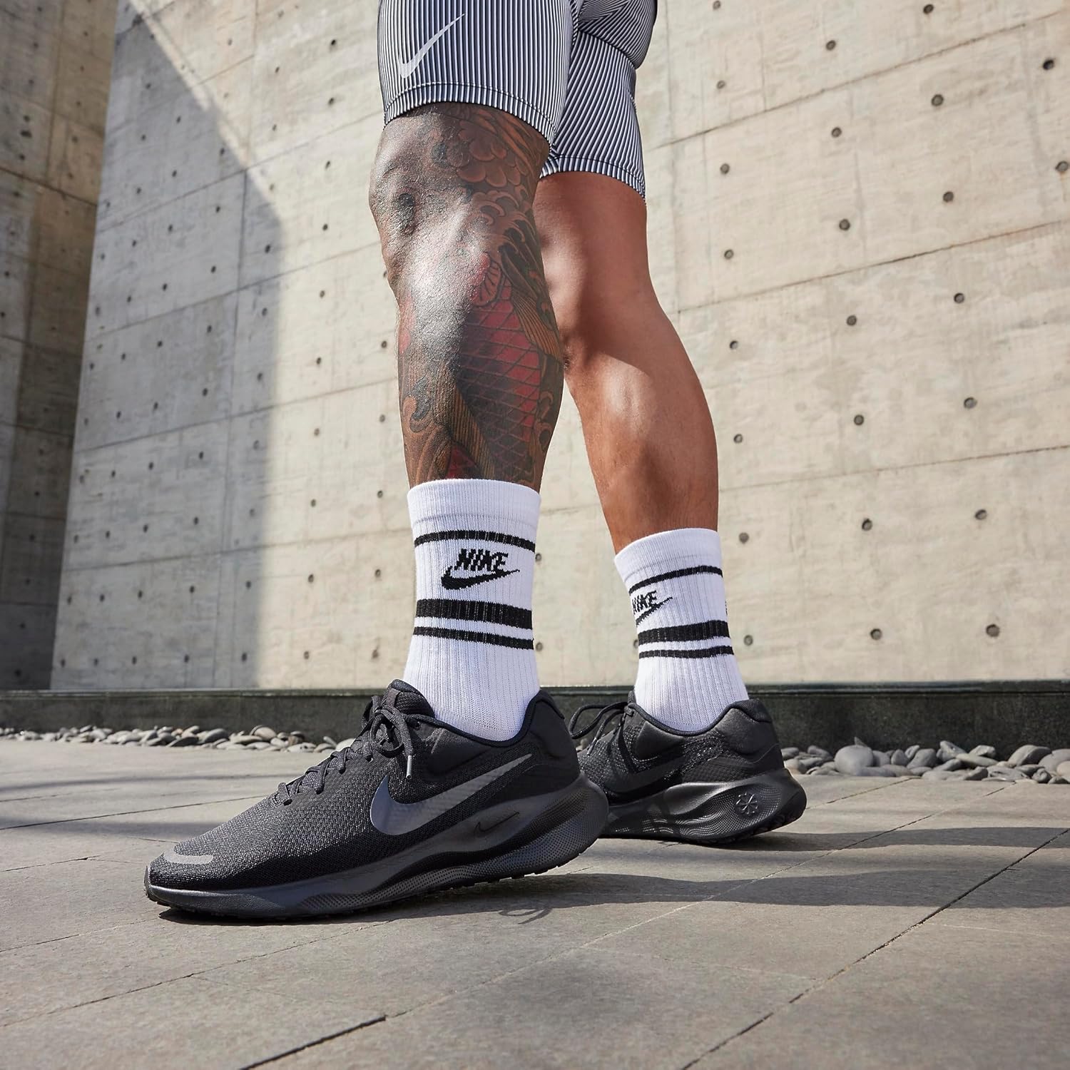 Мы оснастили Revolution 7 всей мягкой амортизацией и поддержкой, которые вам нужны, чтобы кардинально изменить ваш бег. Стильные, как всегда, удобные, когда ваша нога касается земли и идеально подходящие для того, чтобы не отставать от вас, эта эволюция одной из самых любимых моделей предлагает плавную, текущую походку. Незаменимая пена Пенная промежуточная подошва обеспечивает мягкий, амортизированный ход. Кроссовки имеют больше места в передней части стопы по сравнению с предыдущей моделью, поэтому они не будут сжимать или защемлять пальцы ног. Мягкие на ощупь. Мы добавляем видимые штрихи на пятке с внешней стороны обуви. Они мягкие на ощупь и обеспечивают комфорт в области ахиллова сухожилия. Точки контакта на язычке создают естественную посадку, когда вы надеваете обувь. Надежное сцепление Генеративная структура сцепления на подошве вместе с резиновыми выступами обеспечивает сцепление при езде вверх или вниз.
