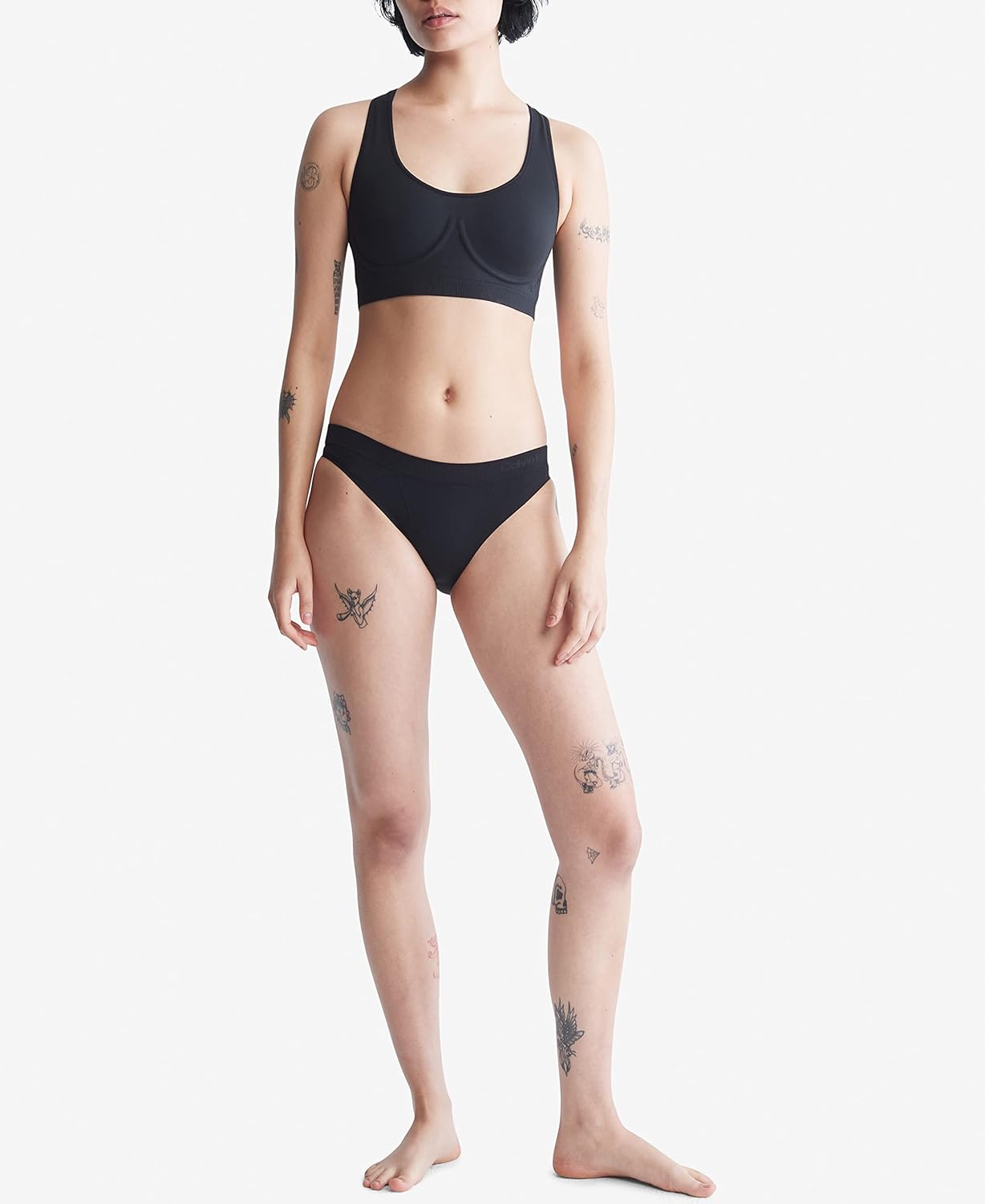 Тонкий переработанный бесшовный трикотаж с эластичностью для улучшенной поддержки Технология поддержки пены без проволоки Полностью регулируемые лямки с логотипом и спинкой-борцовкой Тональный тисненый логотип для фирменного стиля Эластичная лента для нижнего белья Calvin Klein с превосходным сохранением формы