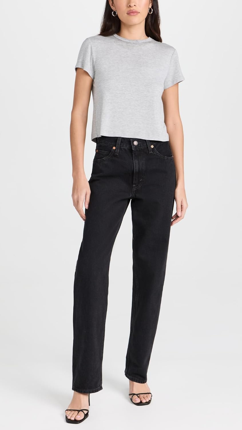 Идут размер в размер. Модель средней посадки, с прямыми штанинами длиной до щиколотки. Неэластичный деним со временем размягчится и даст форму.