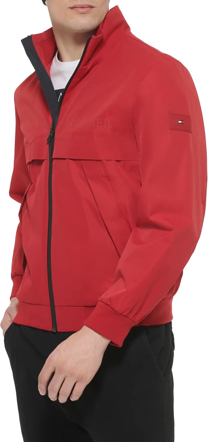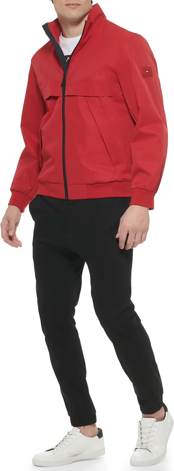 Бомбер с чистым логотипом из матовой водонепроницаемой ткани. Застежка-молния по центру спереди, два нижних кармана, один внутренний карман на молнии. Логотип Tommy Hilfiger слева на груди и на левом рукаве.
