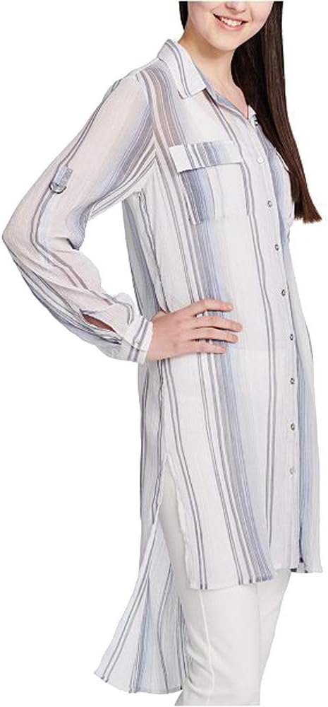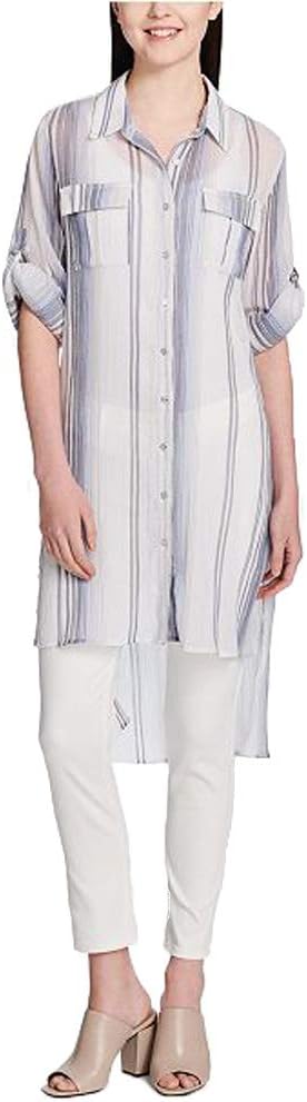 Удобные рукава с отворотами придают этой хлопковой тунике от Calvin Klein бесконечную универсальность. Модель выполнена из хлопка с удлиненным асимметричным подолом и боковыми разрезами. Отложной воротник; застежка на пуговицы спереди. Асимметричный подолом с боковыми разрезами. Накладные карманы на груди. Отложные рукава. Полностью хлопок. Ручная стирка. Импортная модель.