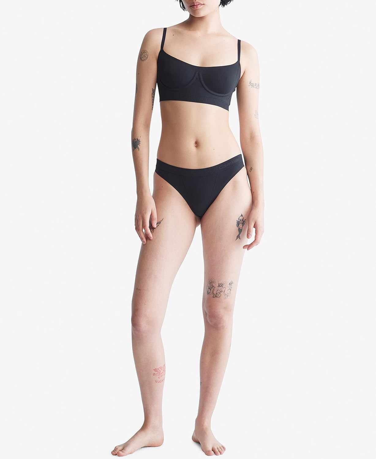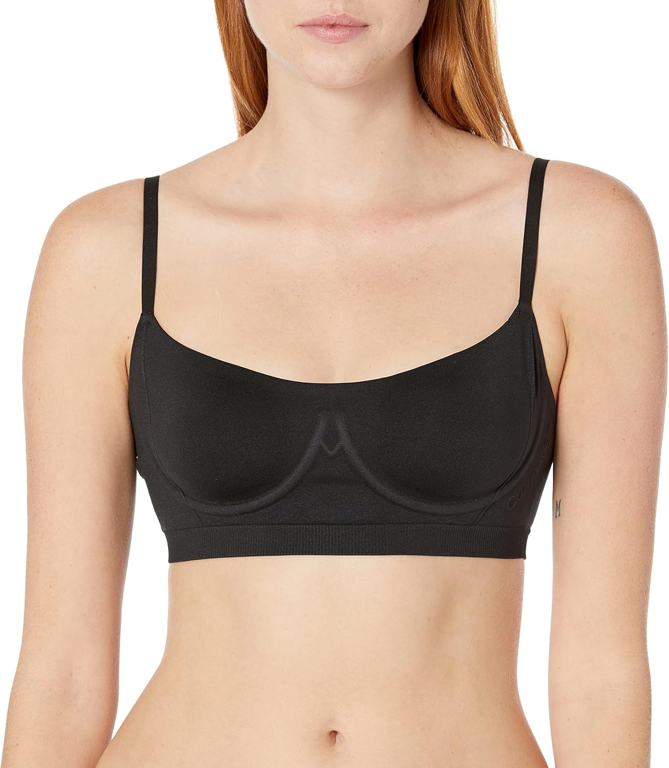 Тонкий переработанный бесшовный трикотаж с эластичностью для улучшенной поддержки Технология поддержки пены без проволоки Полностью регулируемые ремни с логотипом для традиционного или перекрестного ношения Тональный тисненый логотип для фирменного стиля Эластичная лента для нижнего белья Calvin Klein с превосходным сохранением формы