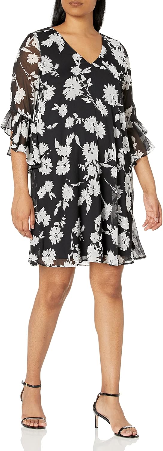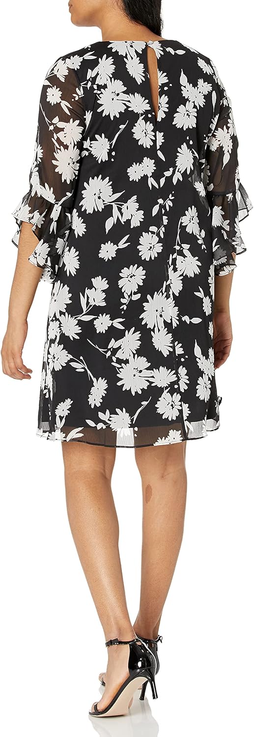 Женское летнее платье с принтом Calvin Klein, Black/Cream Ruffle Sleeve