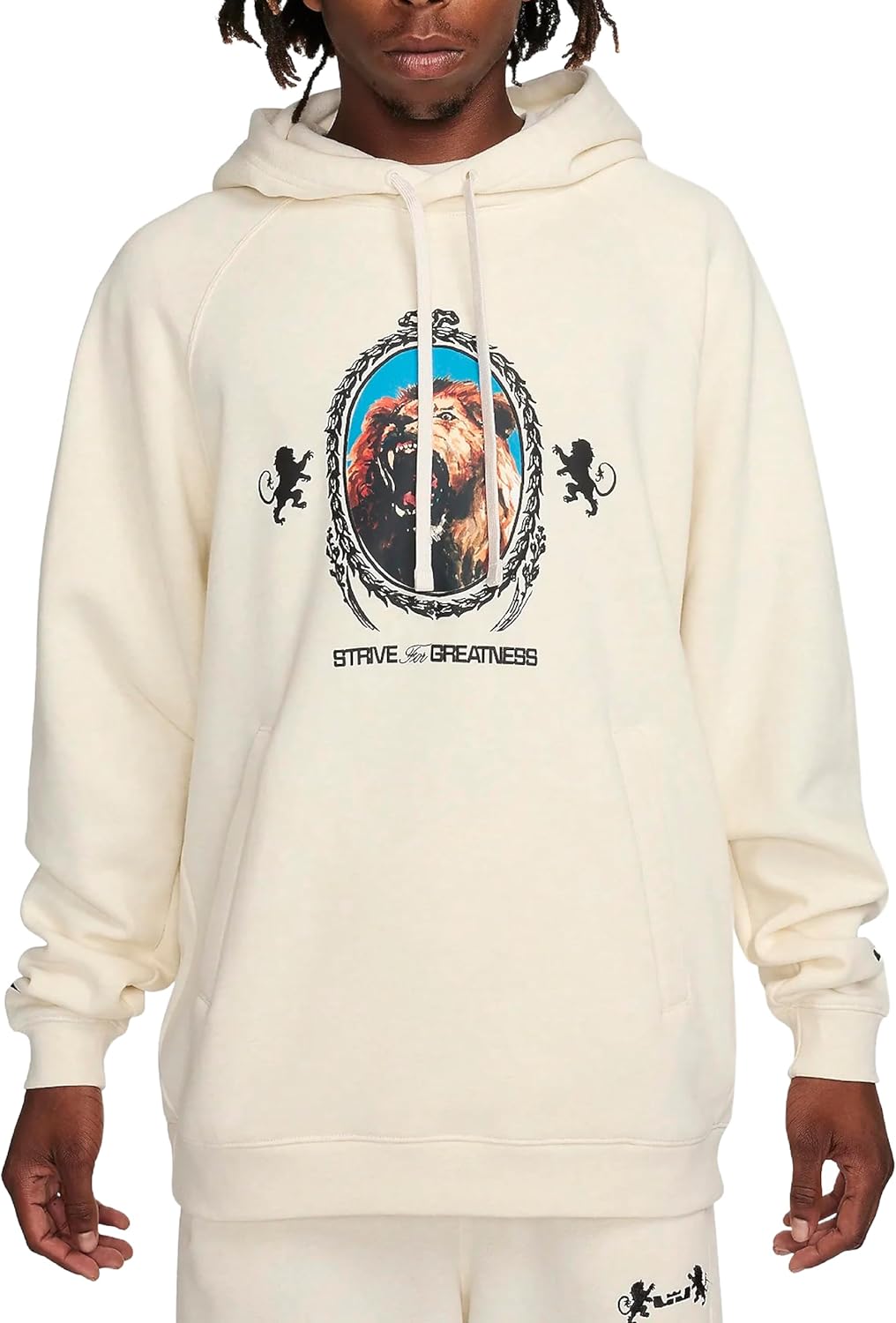Логотипы Леброна воссозданы художником Джейкобом Рочестером. Эта толстовка с изображением льва, короны и девиза Леброна «Стремись к величию» посвящена одному из величайших игроков всех времен.