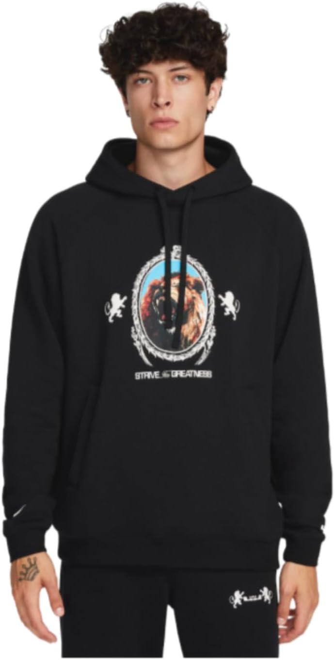 Логотипы Леброна воссозданы художником Джейкобом Рочестером. Эта толстовка с изображением льва, короны и девиза Леброна «Стремись к величию» посвящена одному из величайших игроков всех времен.