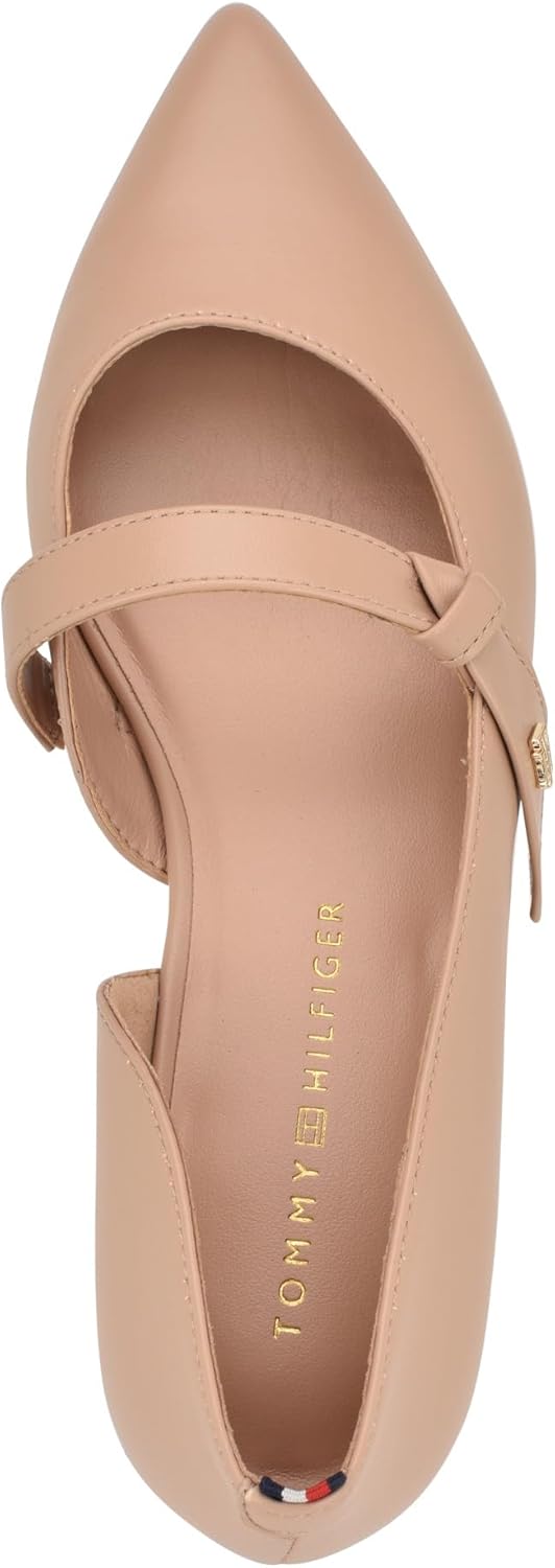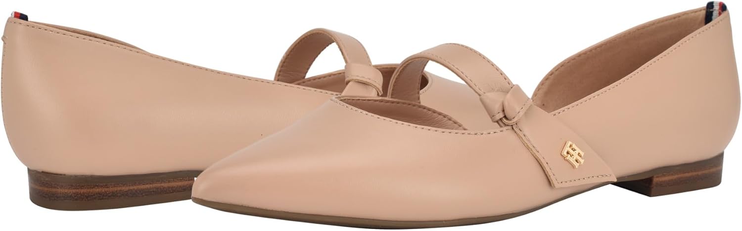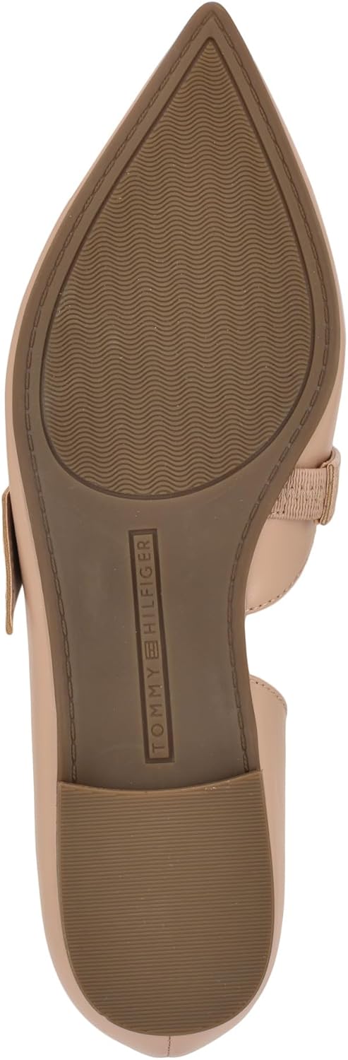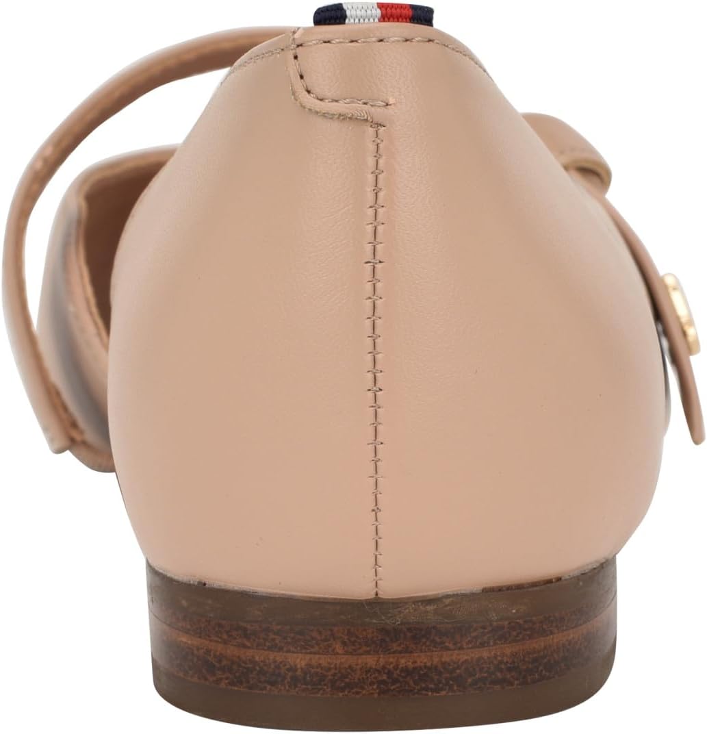 The Tommy Hilfiger Venny maryjane is sure to make any outfit pop! The signature stripe ribbon on the back counter and small grommet give subtle branded touches to enhance your look. You can dress up or down any outfit with these pull-on flats! Polyurethane upper. Polyester lining and polyurethane insole. Pointed toe silhouette. Polyurethane outsole.