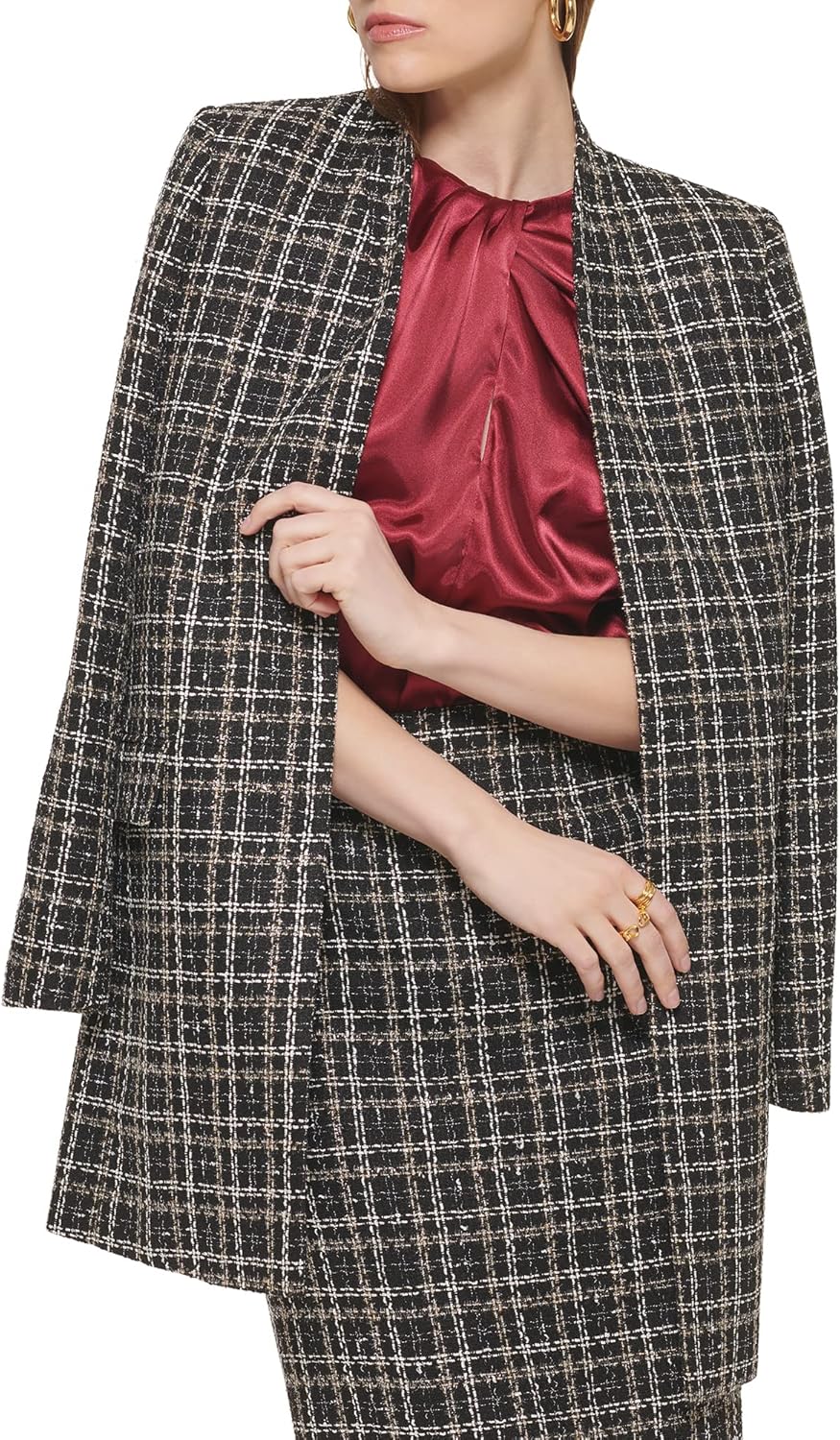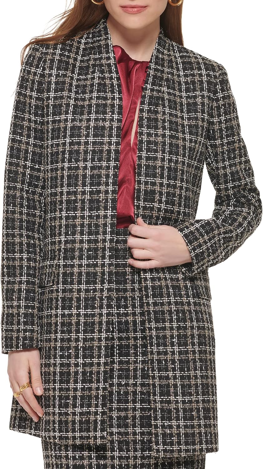 Женский длинный пиджак Calvin Klein с открытым передом, Black Multi