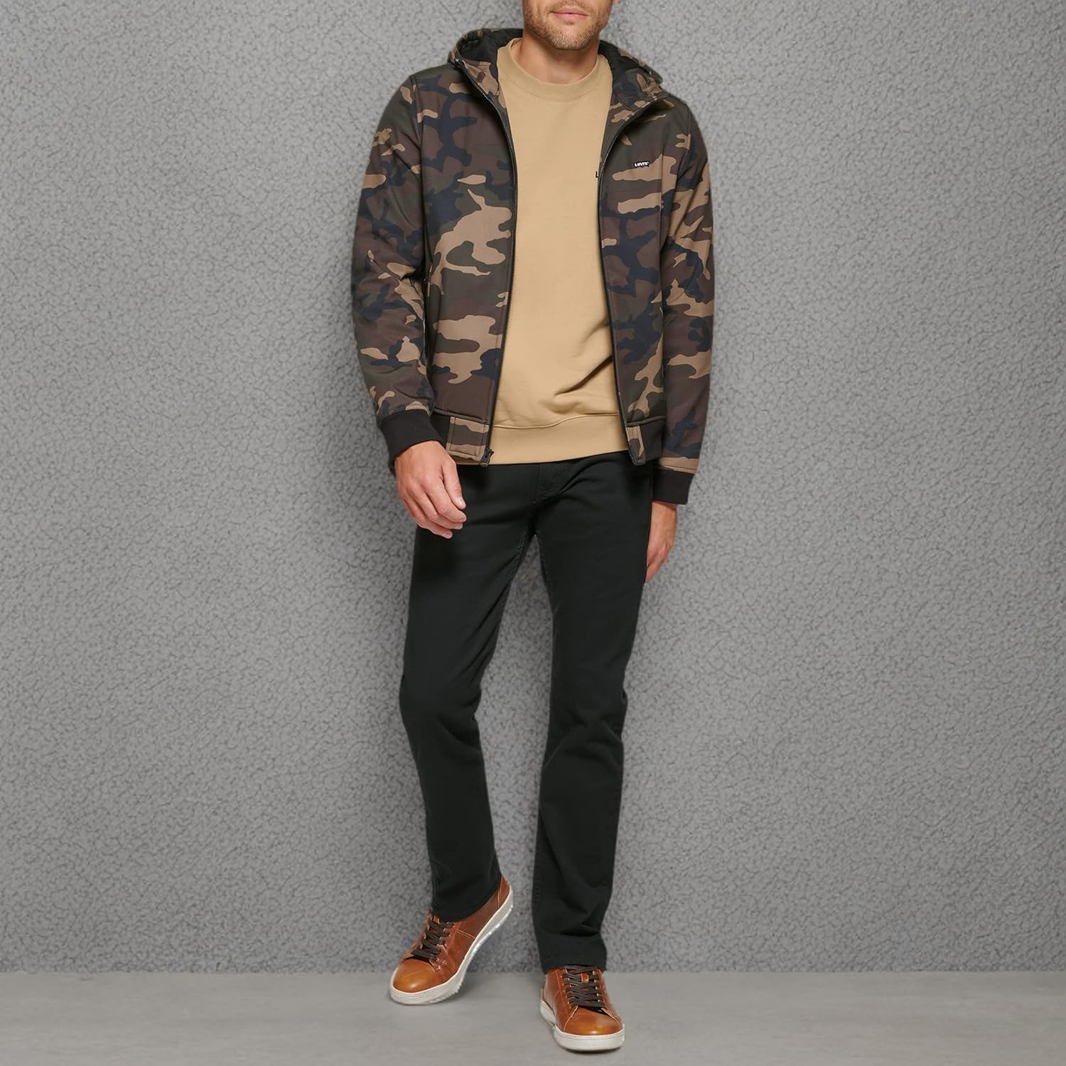 Мужская куртка-бомбер Levi's с капюшоном и водонепроницаемым покрытием Softshell, Camouflage