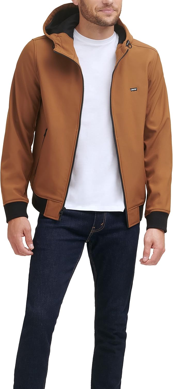 Мужская водонепроницаемая куртка-бомбер Levi's из софтшелла с капюшоном, Worker Brown