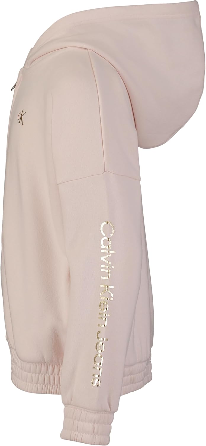 Толстовка Calvin Klein для девочек с длинным рукавом и молнией из флиса, Peony Stack
