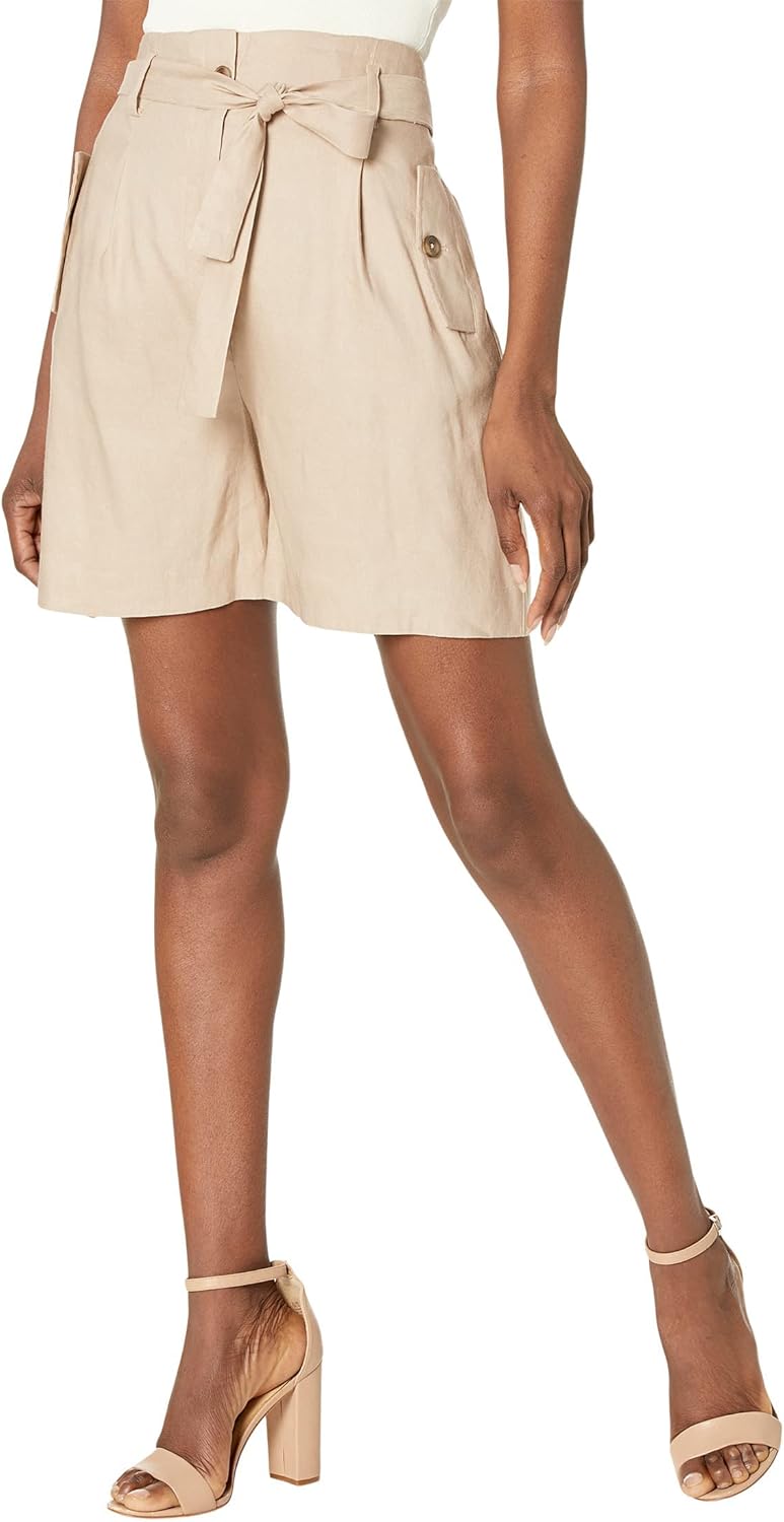 Шорты Calvin Klein с плиссировкой спереди, пуговицами и поясом создают классический образ, который сочетается с любыми нарядами. Эластичный пояс. Шлевки для ремня на талии с завязкой сбоку. Короткий силуэт. Отложной клапан с пуговицами по бокам. Два задних кармана. Состав: 52% лен, 46% Вискоза, 2% спандекс. Химчистка.