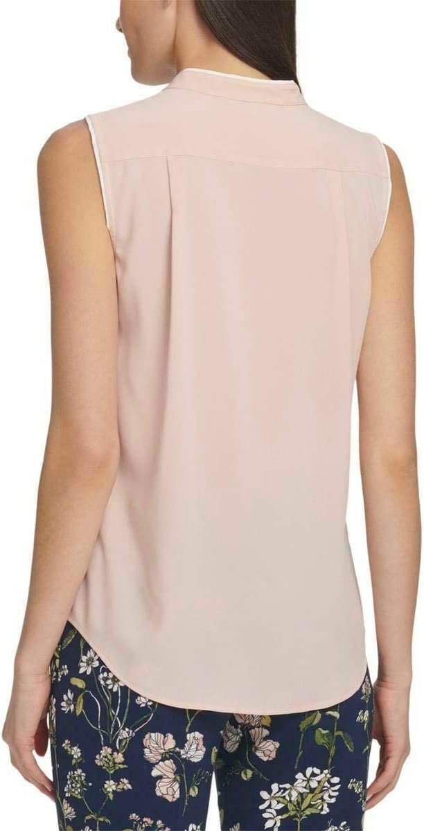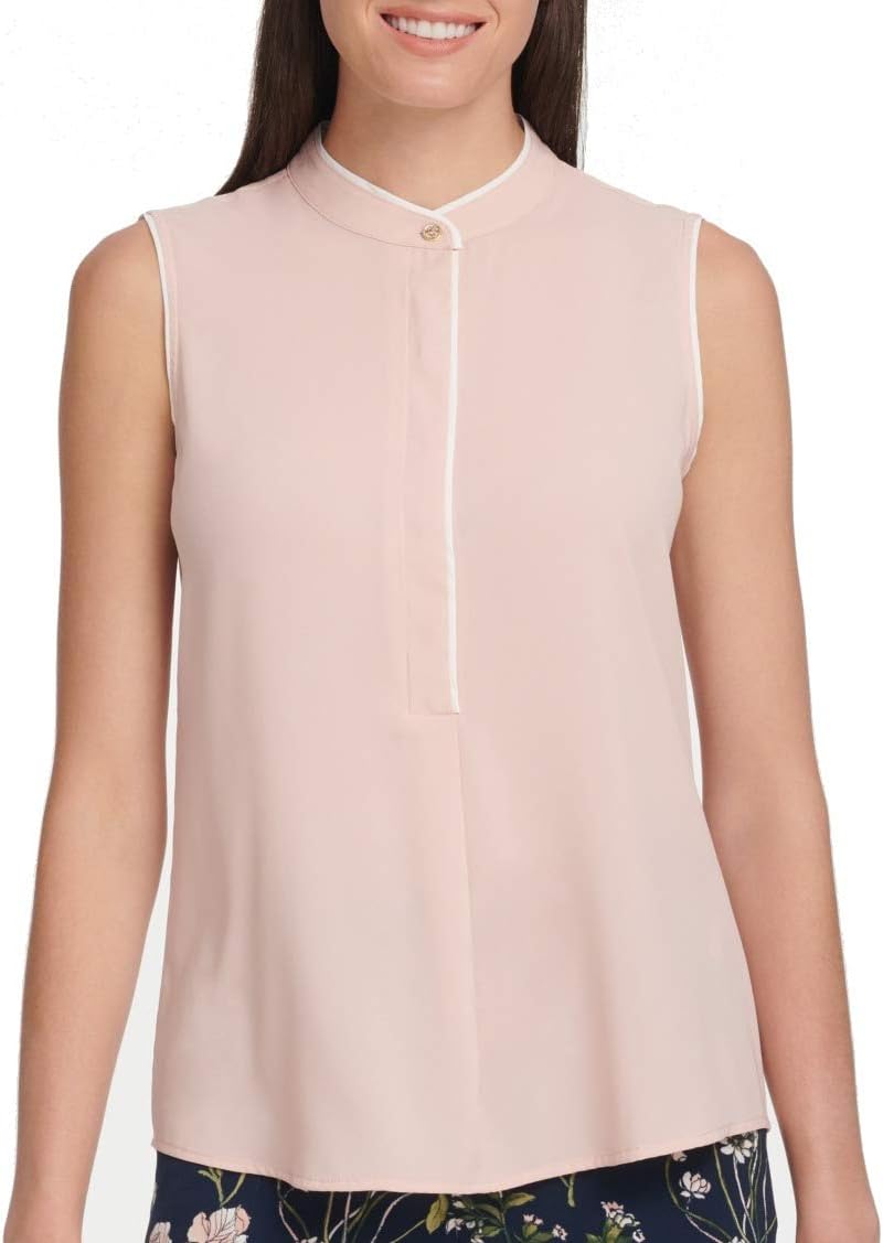 Легкие контрастные штрихи дополняют эту элегантную тканую блузку Tommy Hilfiger, украшенную характерными пуговицами золотистого оттенка. Примерный рост модели - 5 футов 10 дюймов, на ней размер S. Удары по бедру Воротник-стойка с контрастной отделкой; потайная планка с застежкой на половинки пуговиц спереди и контрастной отделкой Кокетка сзади со складками; закругленный подол сзади.