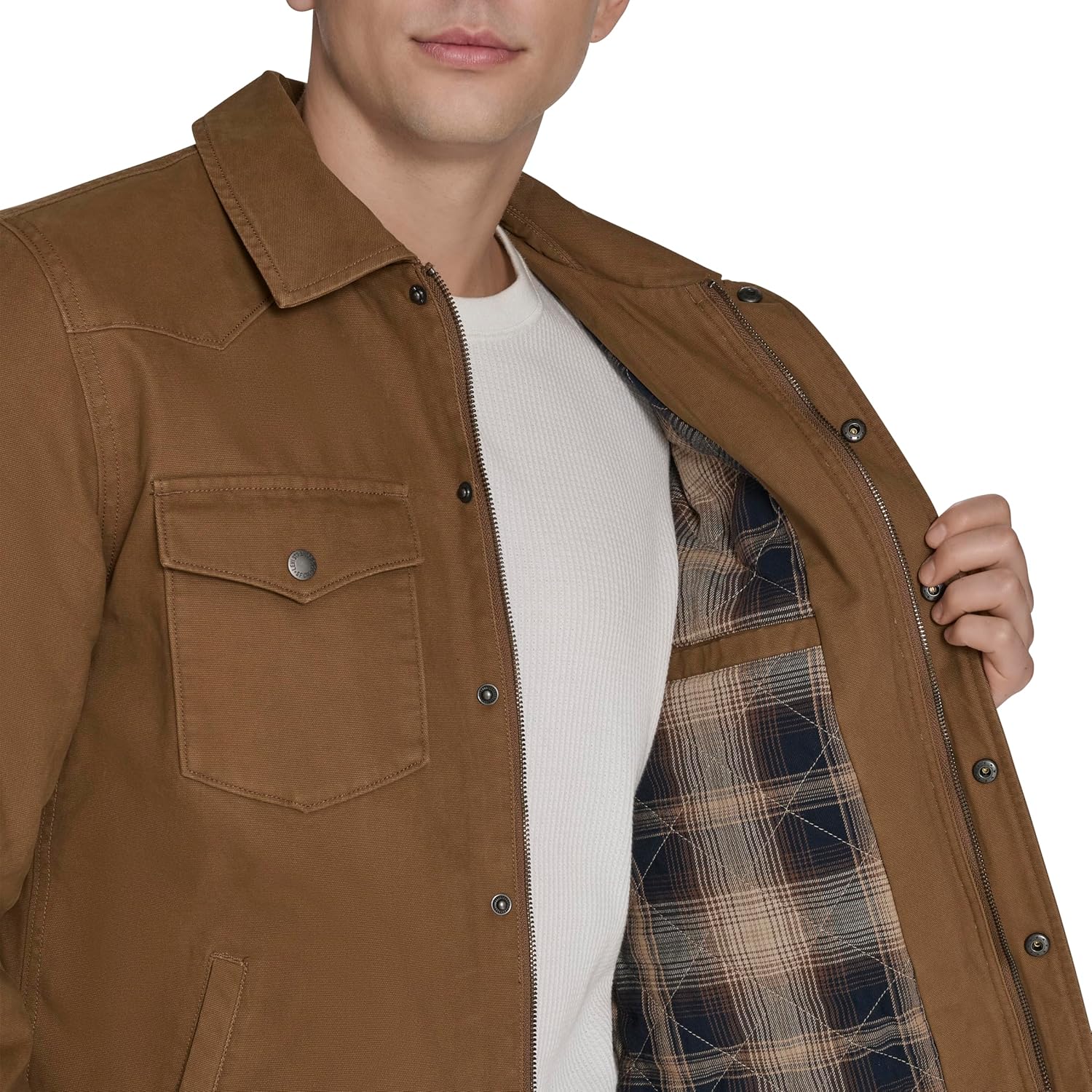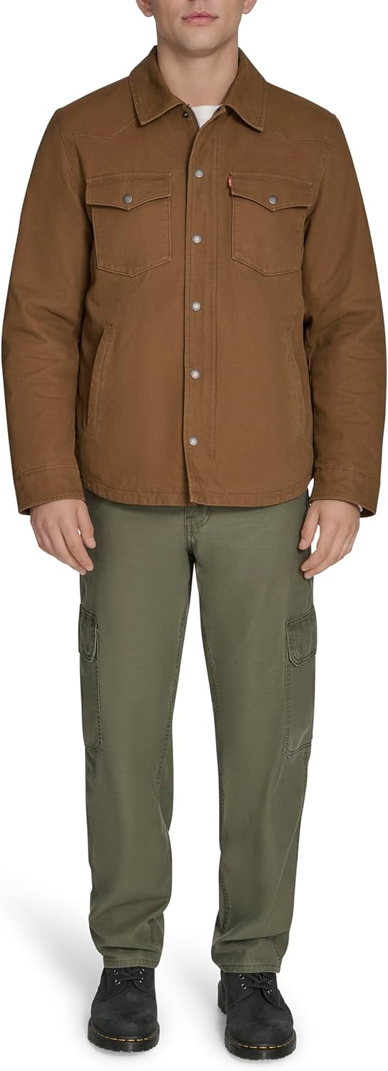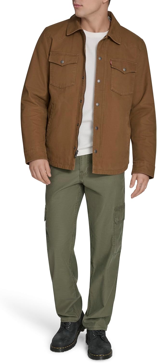 Эта мужская хлопковая куртка Levi's сочетает в себе строгий вестерн-стиль и непринужденное тепло, идеально подходящая для прохладных дней и ночей. Благодаря мягкой клетчатой ​​подкладке с ромбовидной стежкой и практичным деталям, она создана для тех, кто ценит комфорт, не жертвуя индивидуальностью.