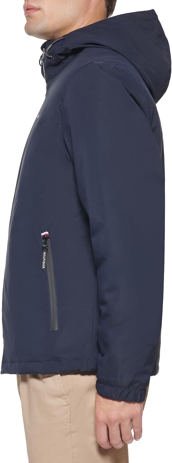 ФУНКЦИОНАЛЬНОСТЬ: Застежка-молния по центру спереди, два нижних кармана на молнии. ТЕПЛОУТИТЕЛЬНЫЕ СВОЙСТВА: Влагозащитные манжеты и пристегивающийся капюшон. СТИЛЬНЫЕ ОСОБЕННОСТИ: Логотип Tommy Hilfiger на бегунках молнии и на левой стороне груди.