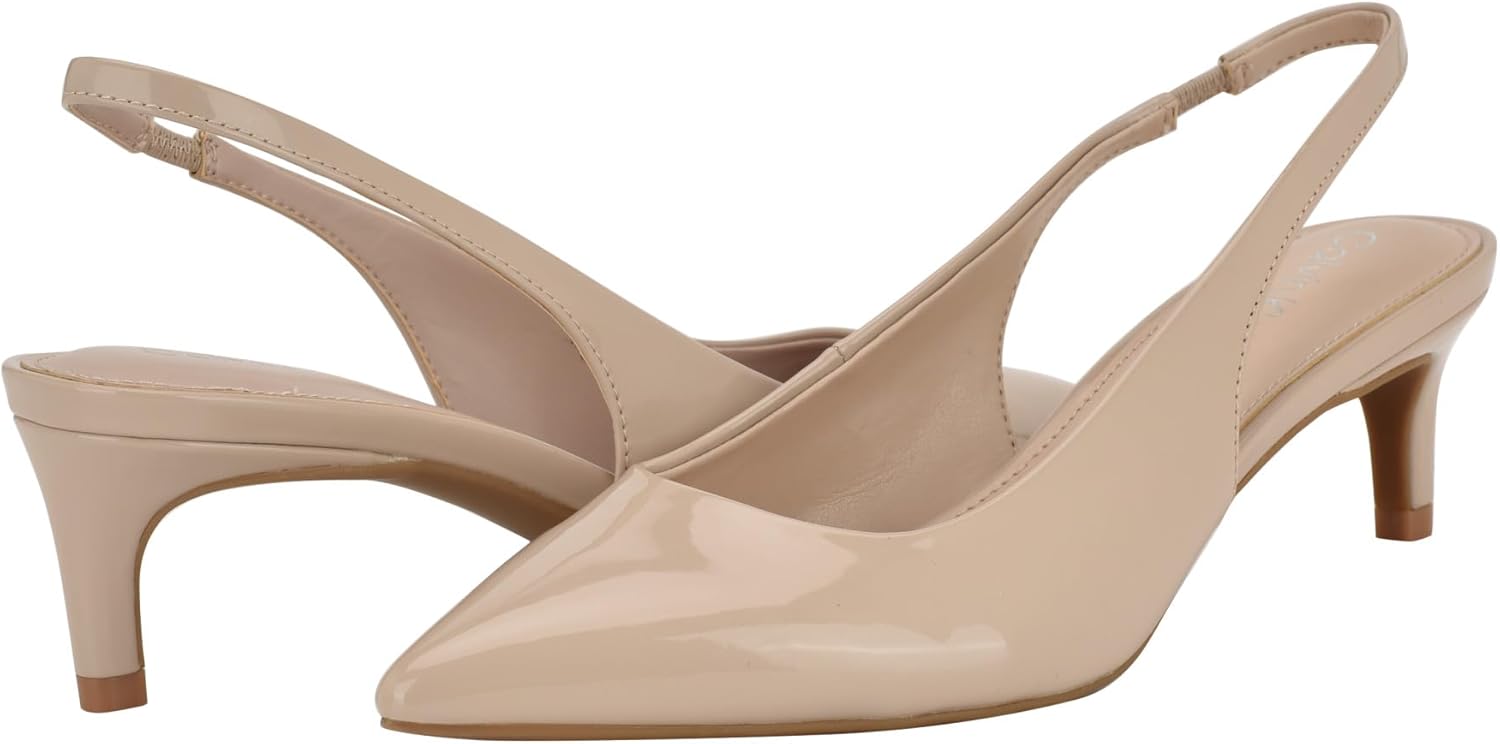 Стильные и модные туфли-лодочки Calvin Klein Dainty - незаменимая вещь в вашем гардеробе. Они отличаются каблуком-рюмочкой, ремешком на пятке и стильным острым носком. Основанный в Нью-Йорке в 1968 году, бренд превращает повседневные вещи в культовые вещи мирового уровня.