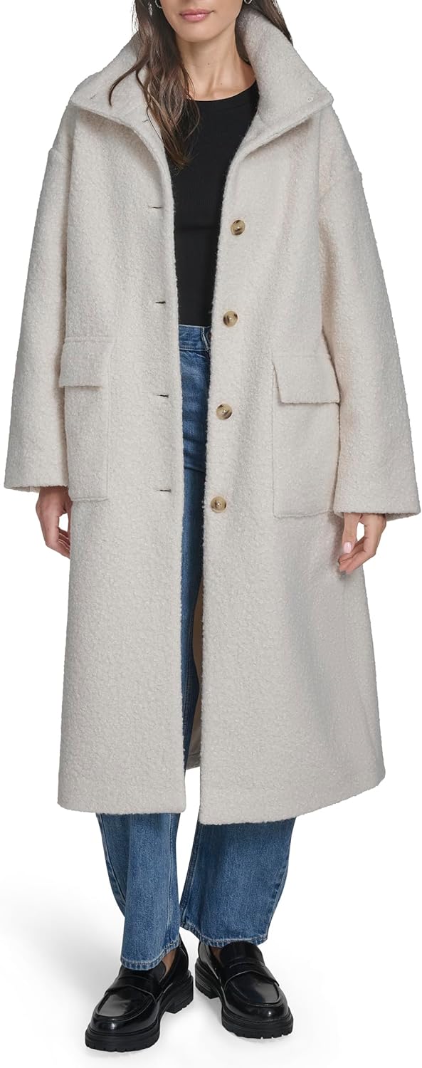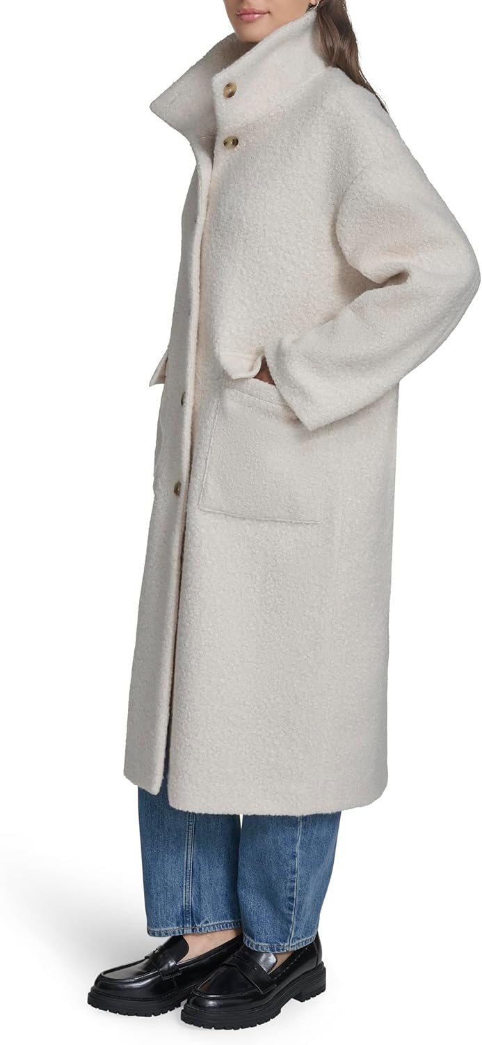 Это длинное полупальто из шерпы-букле окутает вас теплом и текстурой благодаря мягкой ткани и элегантному воротнику-стойке. Благодаря классическому переду с пуговицами и функциональным карманам, это стильный вариант для прохладных дней.