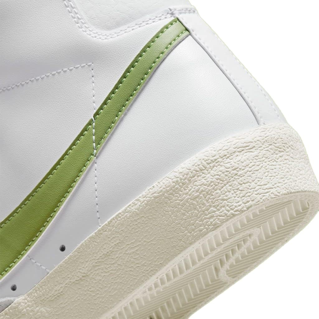 Кроссовки Nike Blazer Mid '77 «Chlorophyll» привносят нотку зеленого в классические баскетбольные кроссовки. Верх из кожи сохраняет классический вид оригинальной модели Blazer с полностью белой отделкой и акцентом в виде хлорофиллово-зеленого логотипа Swoosh. Автоклавная конструкция подошвы соединяет подошву с промежуточной подошвой, создавая обтекаемый вид, напоминающий дизайн 70-х годов.