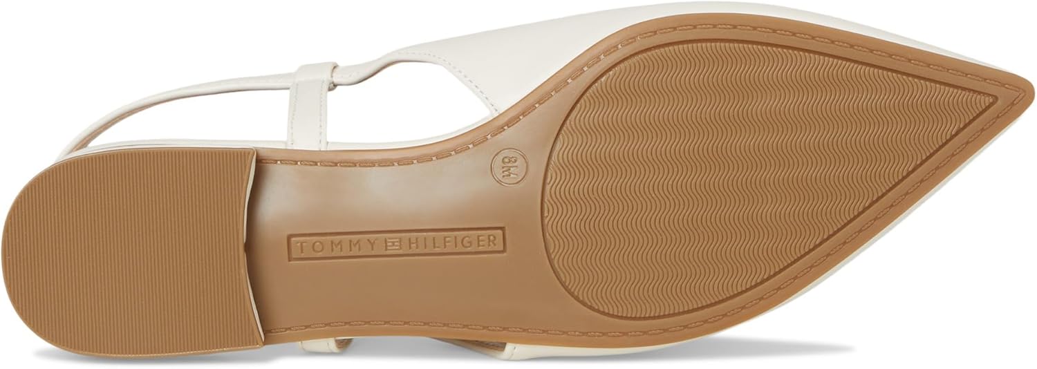 Туфли Tommy Hilfiger Vamina Slingback Flat сделают любой образ ярким! Изящный ремешок сзади с маленьким золотым логотипом и маленькой золотой пряжкой с фирменной символикой придают изящные фирменные штрихи, которые подчеркнут ваш образ. Эти туфли подойдут как для создания элегантного, так и для повседневного образа! Острый носок, низкий каблук, модель без застежки и название бренда на стельке. Верх из полиэстера. Подкладка из полиэстера, кожаная стелька. Кожаная подошва.