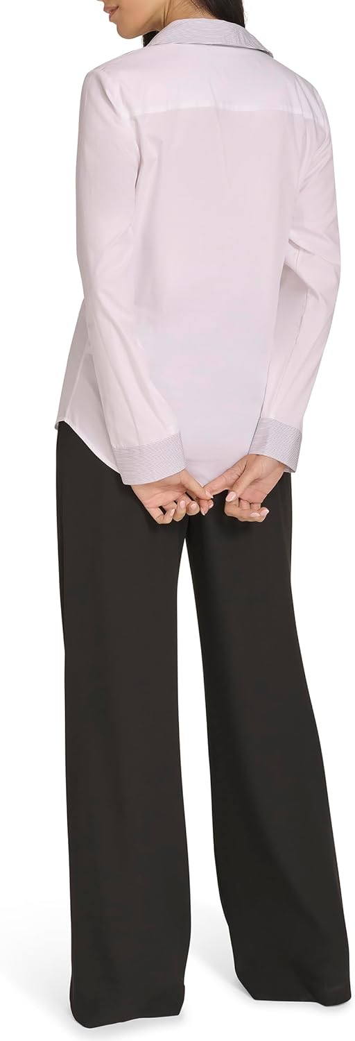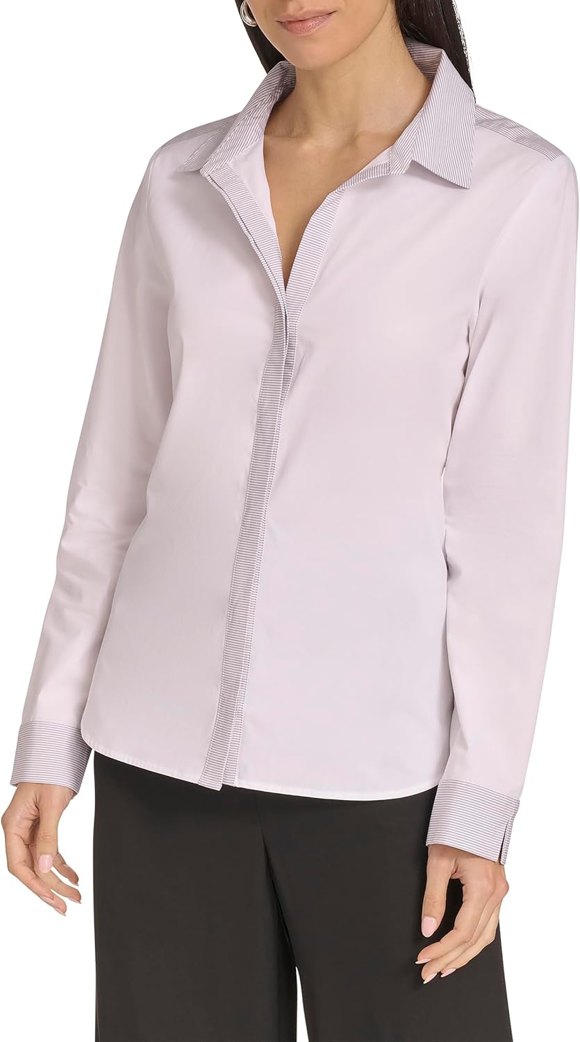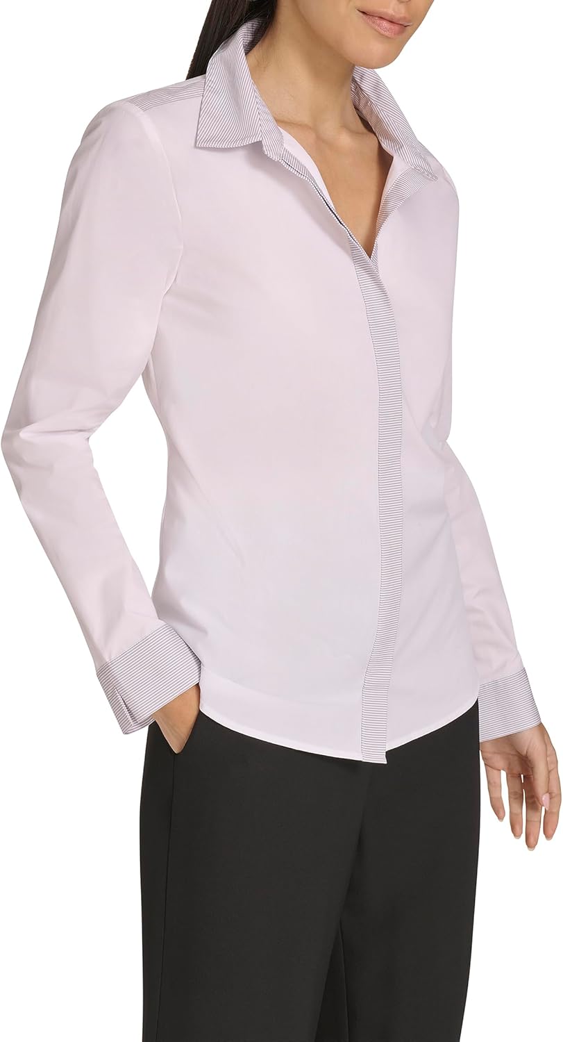 Этот женский тканый топ Calvin Klein - это блузка с воротником и длинным рукавом.