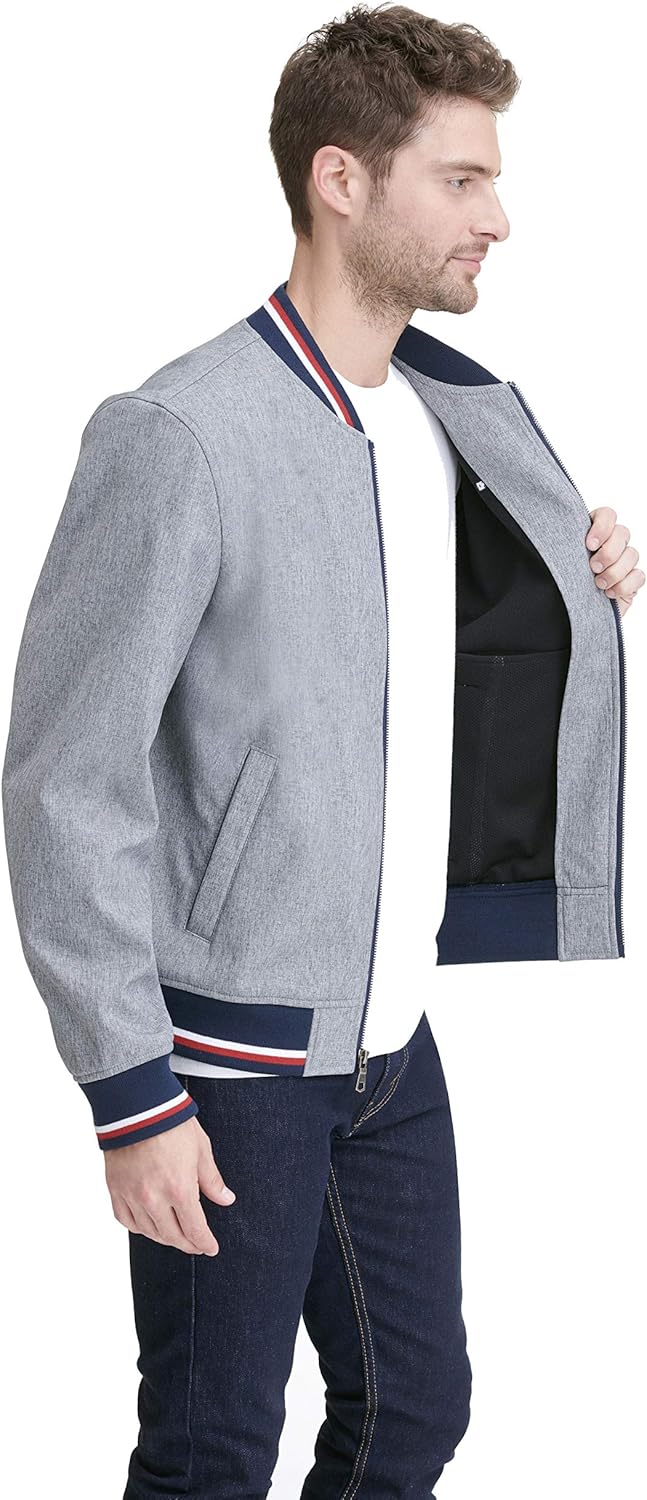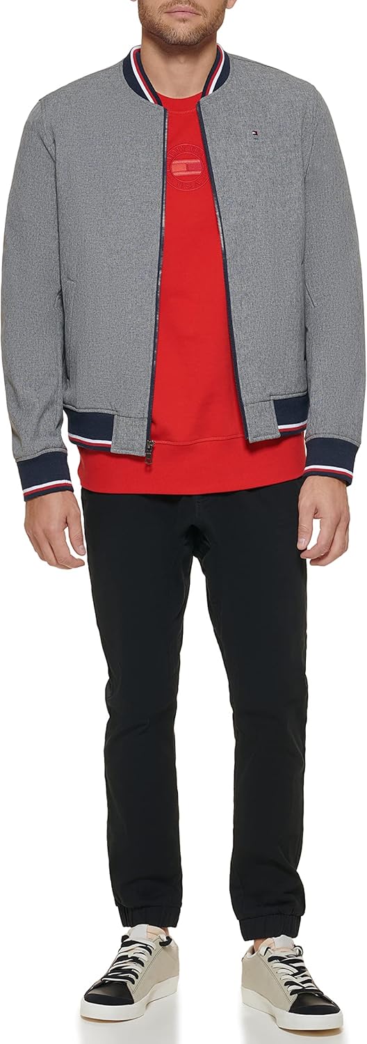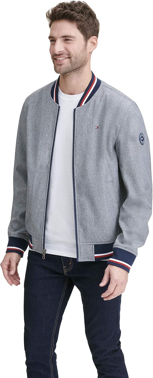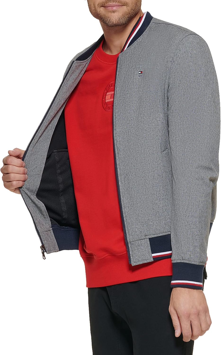 Легкая мужская куртка-бомбер Tommy Hilfiger Varsity Rib Knit, Heather Grey Soft Shell