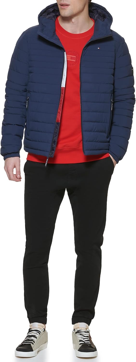 Познакомьтесь с новейшей моделью многослойной одежды в вашем гардеробе - складной курткой с капюшоном из эластичного полиэстера от Tommy Hilfiger.